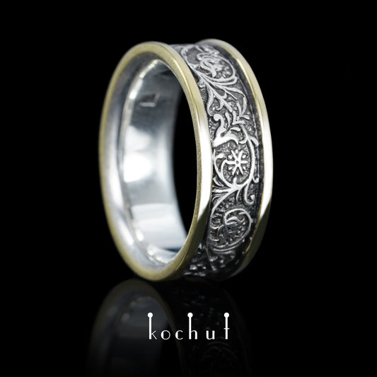 Harmonie der Natur — Ring aus Silber und Gelbgold, überzogen mit schwarzem Rhodium