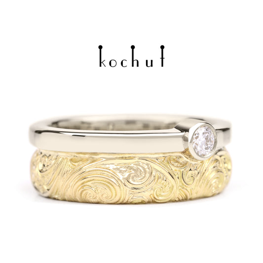 Unbesiegbarkeit der Gefühle — Ehering aus Weiß- und Gelbgold 18K mit Diamant