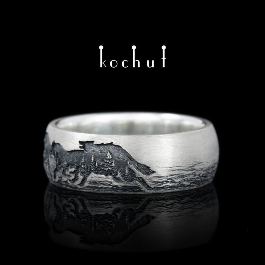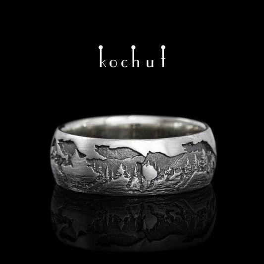 Harmonie der Natur — Weißgold-Ehering mit schwarzem Rhodium überzogen