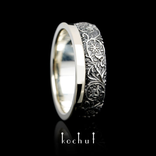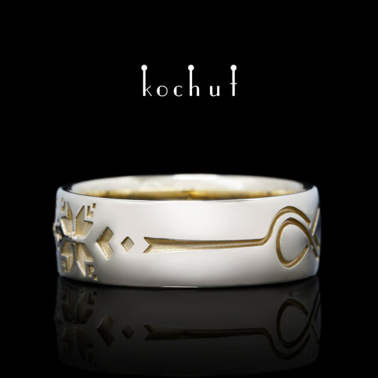 Alatyr mit Unendlichkeit — Ehering aus Weißgold
