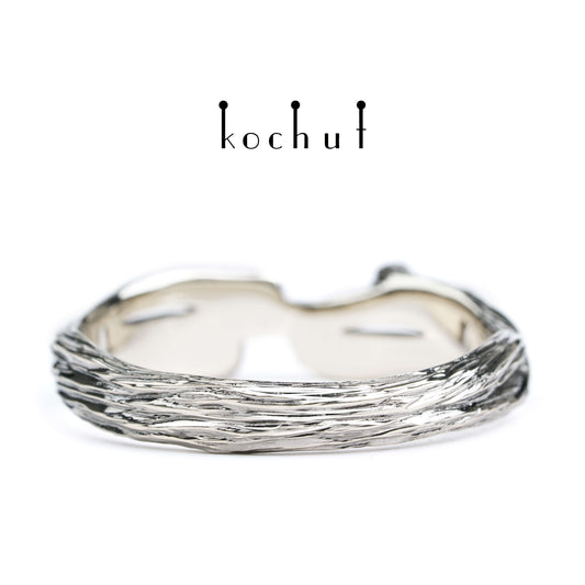 Lebensbaum: Stiele — mattes Ehering aus Weißgold, beschichtet mit weißem Rhodium