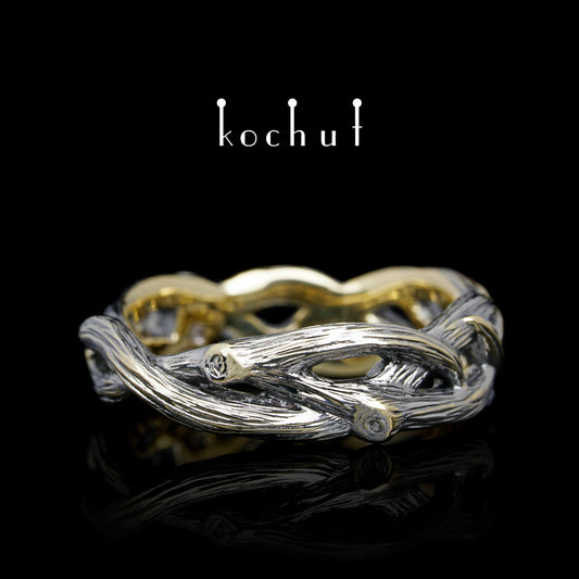 Mobius Forest Ribbon — Ehering aus Gelbgold, beschichtet mit schwarzem Rhodium