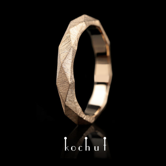 Baum des Lebens: Aschenrinde — Ehering aus Rotgold, beschichtet mit schwarzem Rhodium