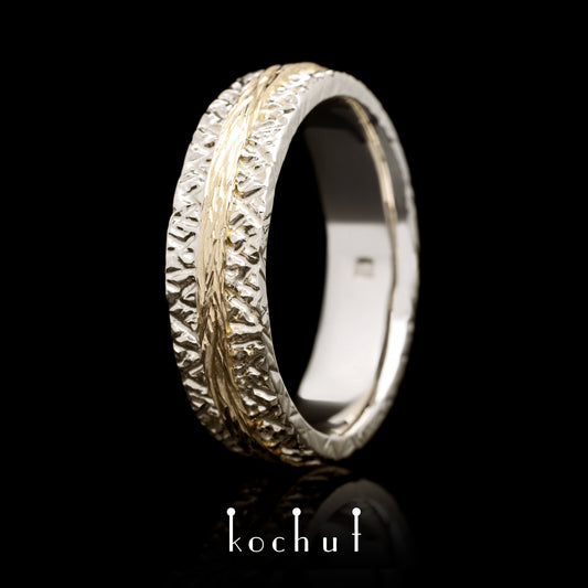 Baumrinde — Ehering aus Weißgold, überzogen mit schwarzem Rhodium