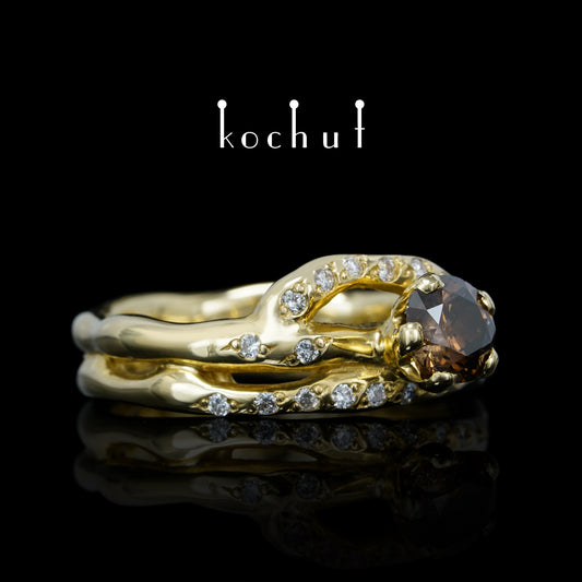 Cassiopeia — gelber Gold-Verlobungsring mit braunen und weißen Diamanten