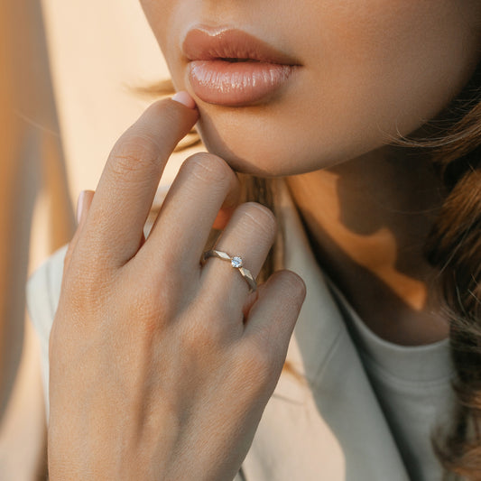 Kleine Freude — Verlobungsring aus Weißgold mit Diamant