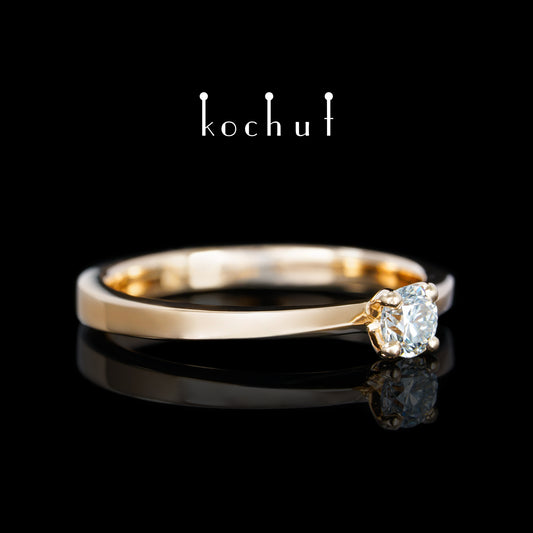 Unschuld — Verlobungsring aus Gelbgold mit einem Diamanten
