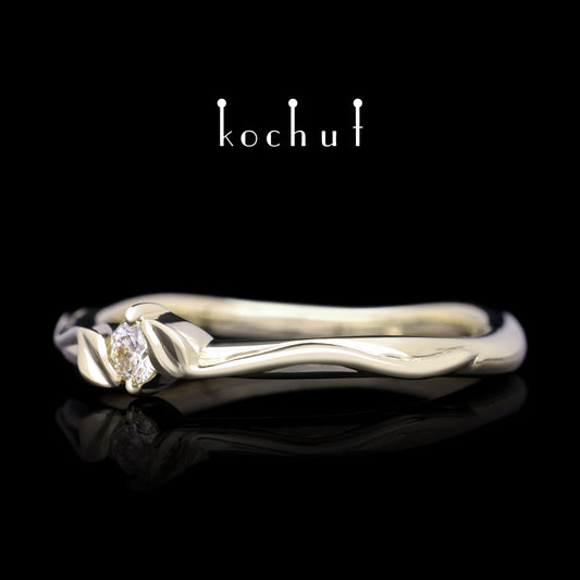 Sanfte Umarmungen — Weißgoldring mit einem Diamanten, überzogen mit weißem Rhodium