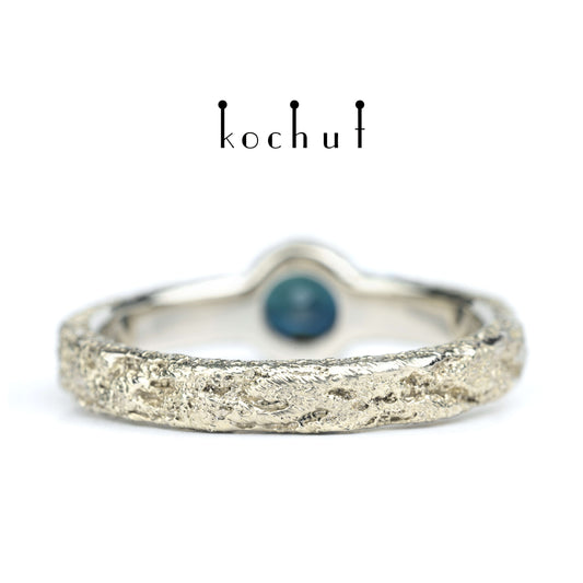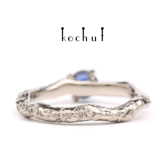 Zartes Zweig — Verlobungsring aus Weißgold mit Kornblumen-Saphir, überzogen mit weißem Rhodium