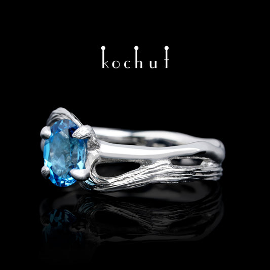 Lignum — Verlobungsring aus Weißgold mit Topas, überzogen mit weißem Rhodium