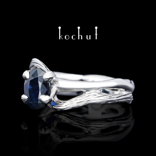 Lignum — Verlobungsring aus Weißgold mit Saphir, beschichtet mit weißem Rhodium