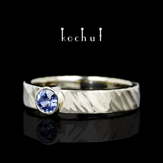 Kaleidoskop — Ring aus Weißgold mit Kornblumen-Saphir