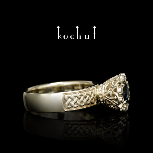 Zärtlichkeit der Gefühle — Verlobungsring aus Weißgold mit schwarzem Spinell