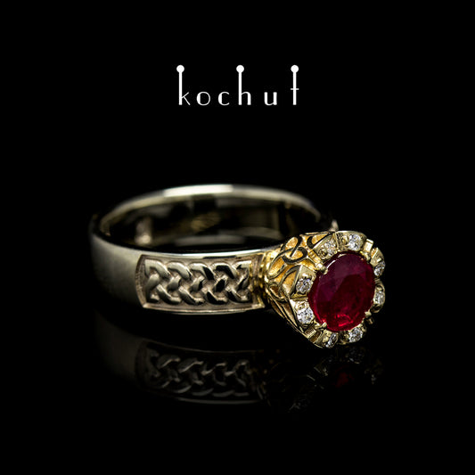 Grand Imperium — Verlobungsring aus Weiß- und Gelbgold mit Rubin und Diamanten