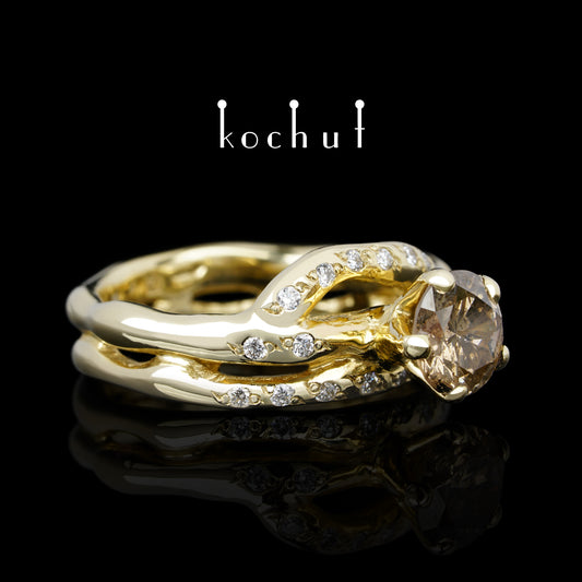 Cassiopeia — gelber Gold-Verlobungsring mit braunen und weißen Diamanten