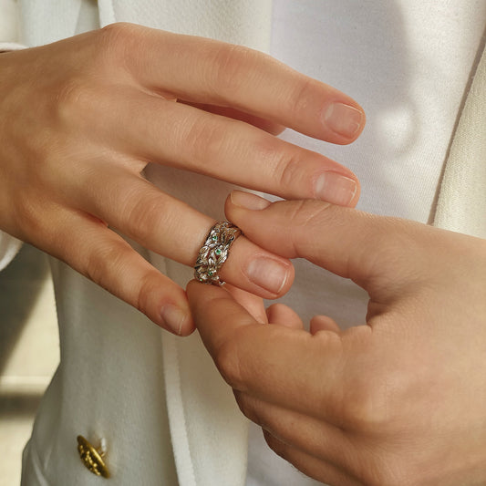 Luxus aus jedem Blickwinkel. Er präsentiert sich uns in Form eines zarten Zweigs, reifer Früchte und leuchtend gefärbter Blätter. Die Ringe, Ohrringe, Anhänger und Verlobungsringe dieser Kollektion betonen die lebendige und essentielle Natur ihres Trägers. „Sonniger Wald“, „Die Freude des Lebens“, „Waldfee“ und andere Schmuckstücke dieser Kollektion laden dazu ein, der Natur selbst nachzueifern.