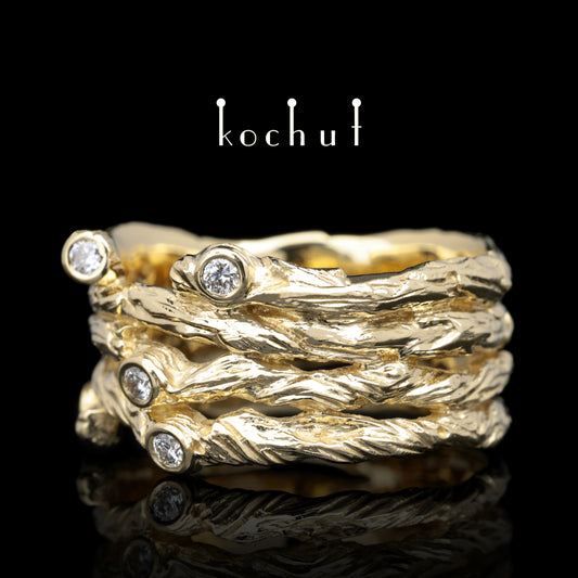 Breiter Zweig — Ring aus Gelbgold mit Diamanten