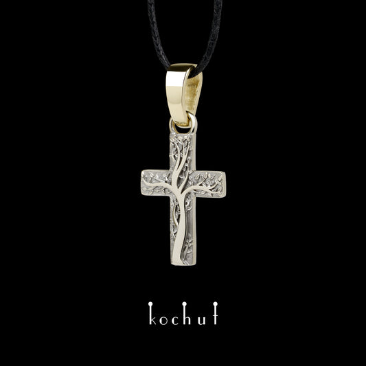 Die Wurzeln des Glaubens — Kreuz aus Weiß- und Gelbgold mit schwarzem Rhodium