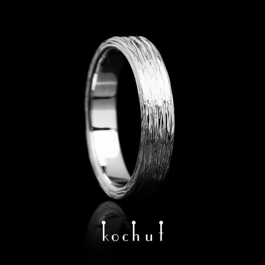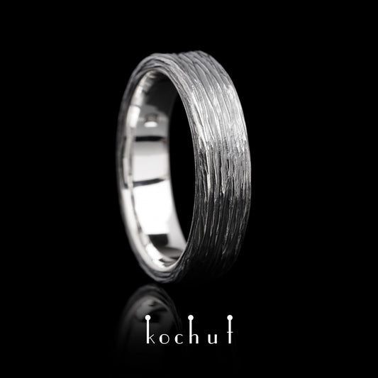 Baumrinde — Ehering aus Weißgold, beschichtet mit weißem Rhodium