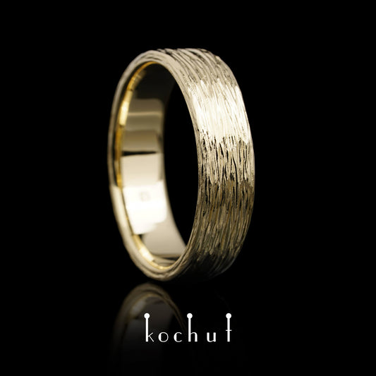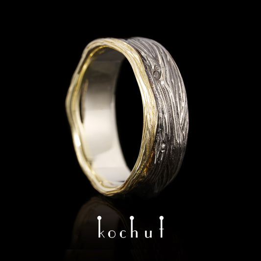 Wald — Ehering aus oxidiertem Silber und Gelbgold