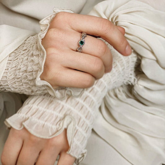 Sprossen — silberner Ring mit Smaragd, überzogen mit WeißgoldrhODIUM