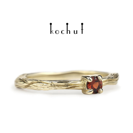 Winterzweig — Ring aus Gelbgold mit Granat