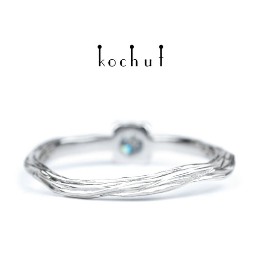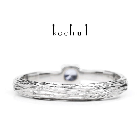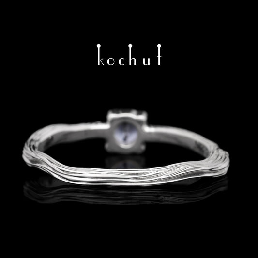 Zartes Zweig — Verlobungsring aus Weißgold mit Kornblumen-Saphir, überzogen mit weißem Rhodium