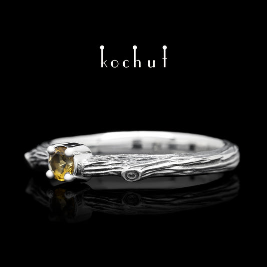 Zartes Zweig — Ring aus oxidiertem Silber mit Citrin