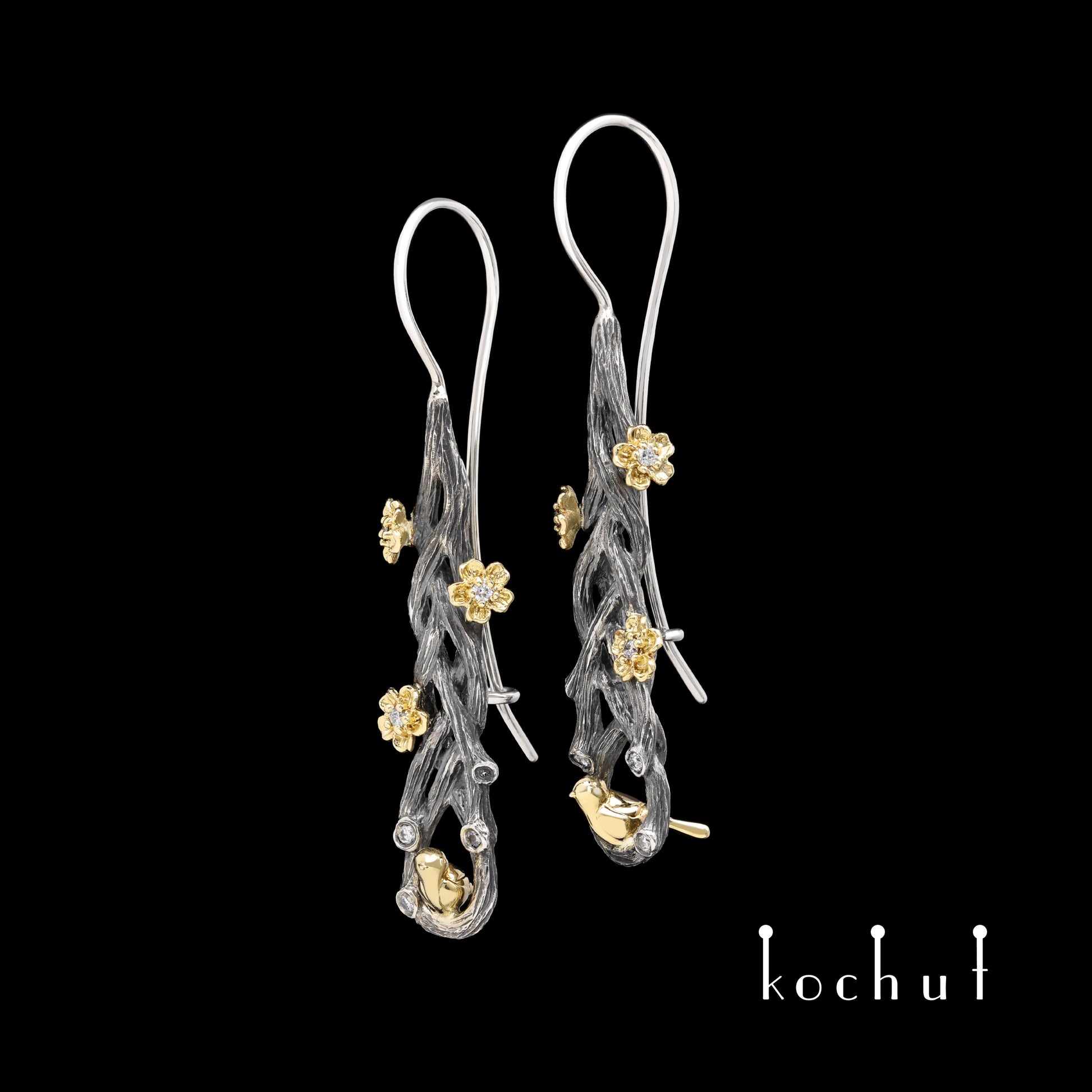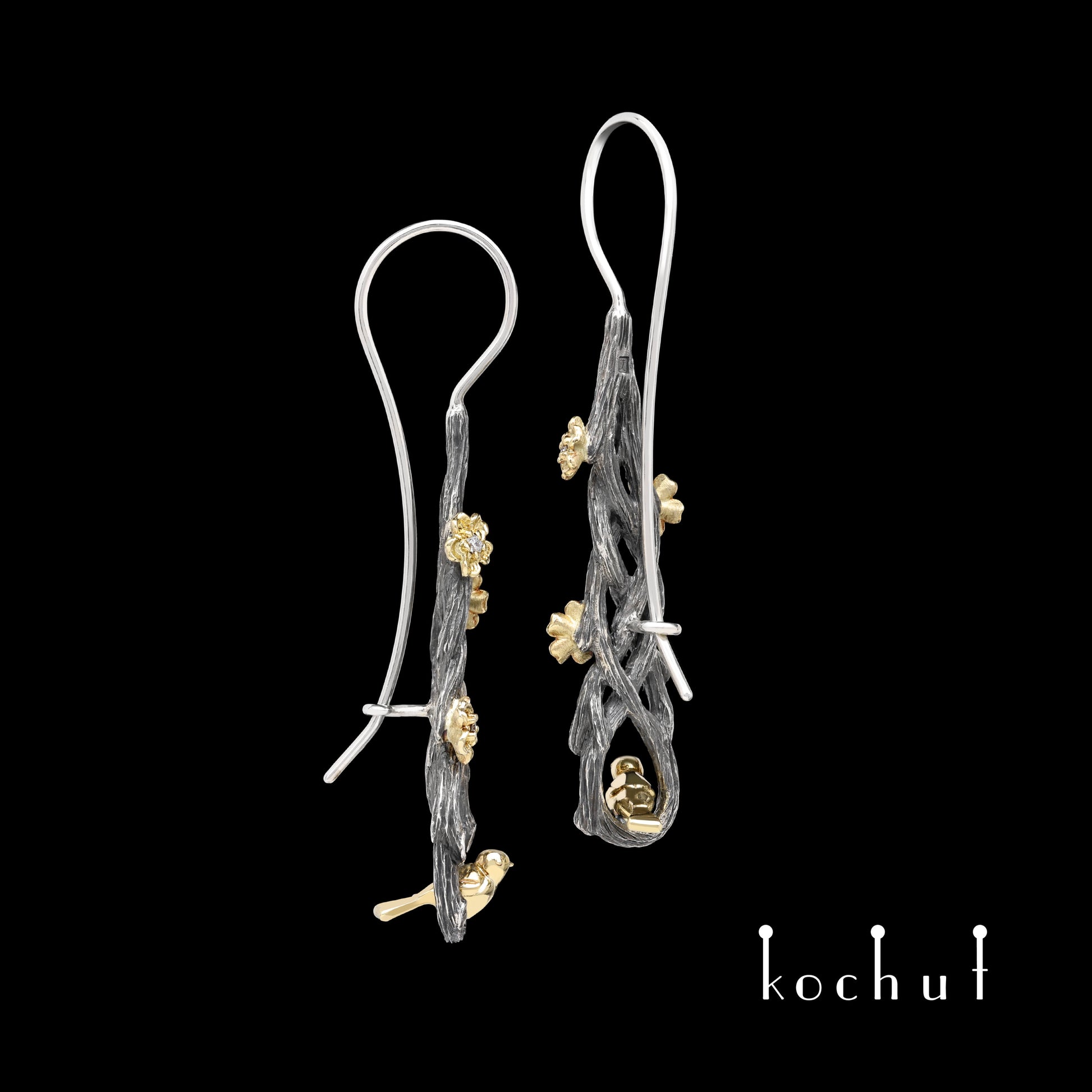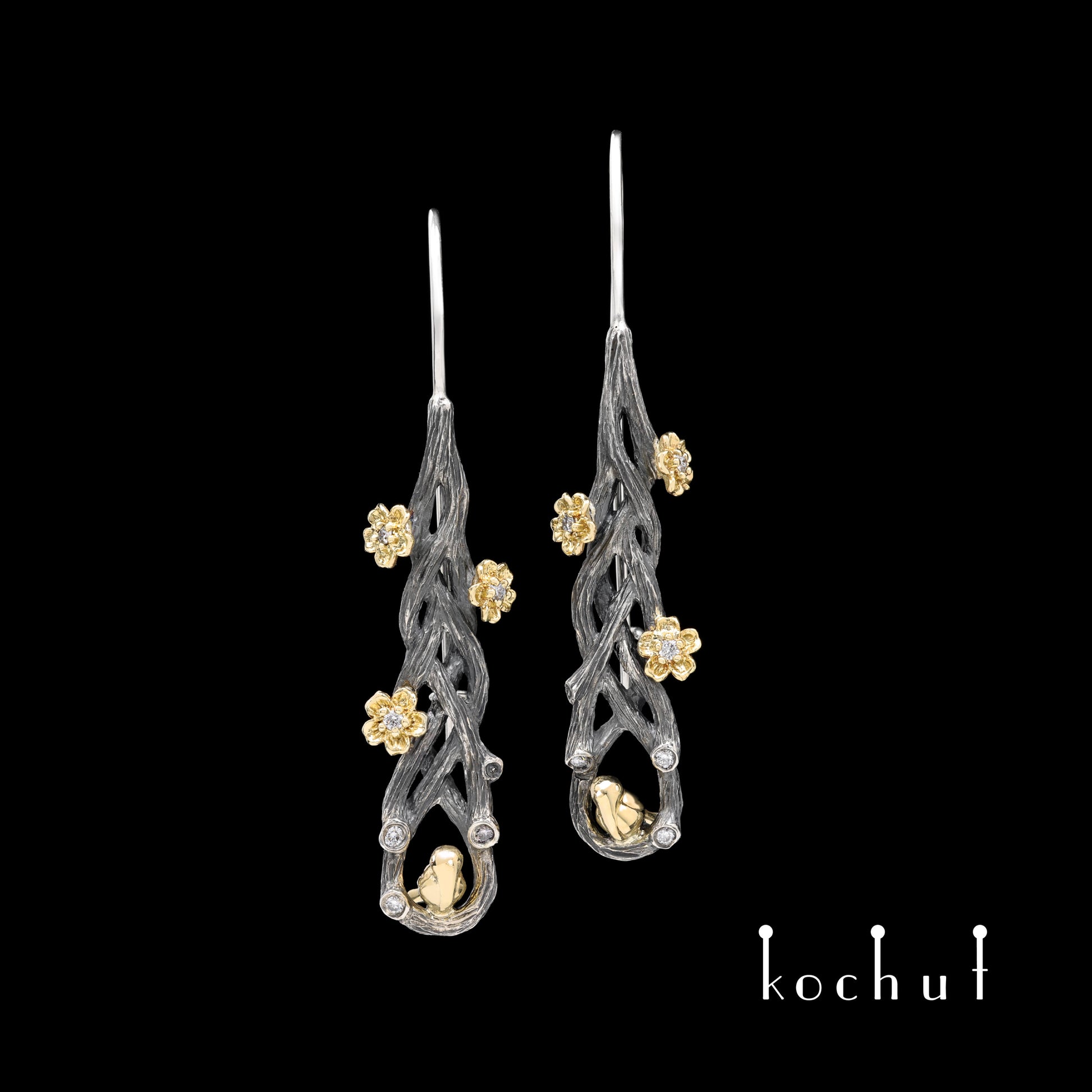 Rivendell — Ohrringe aus oxidiertem Silber und Gelbgold mit Diamanten