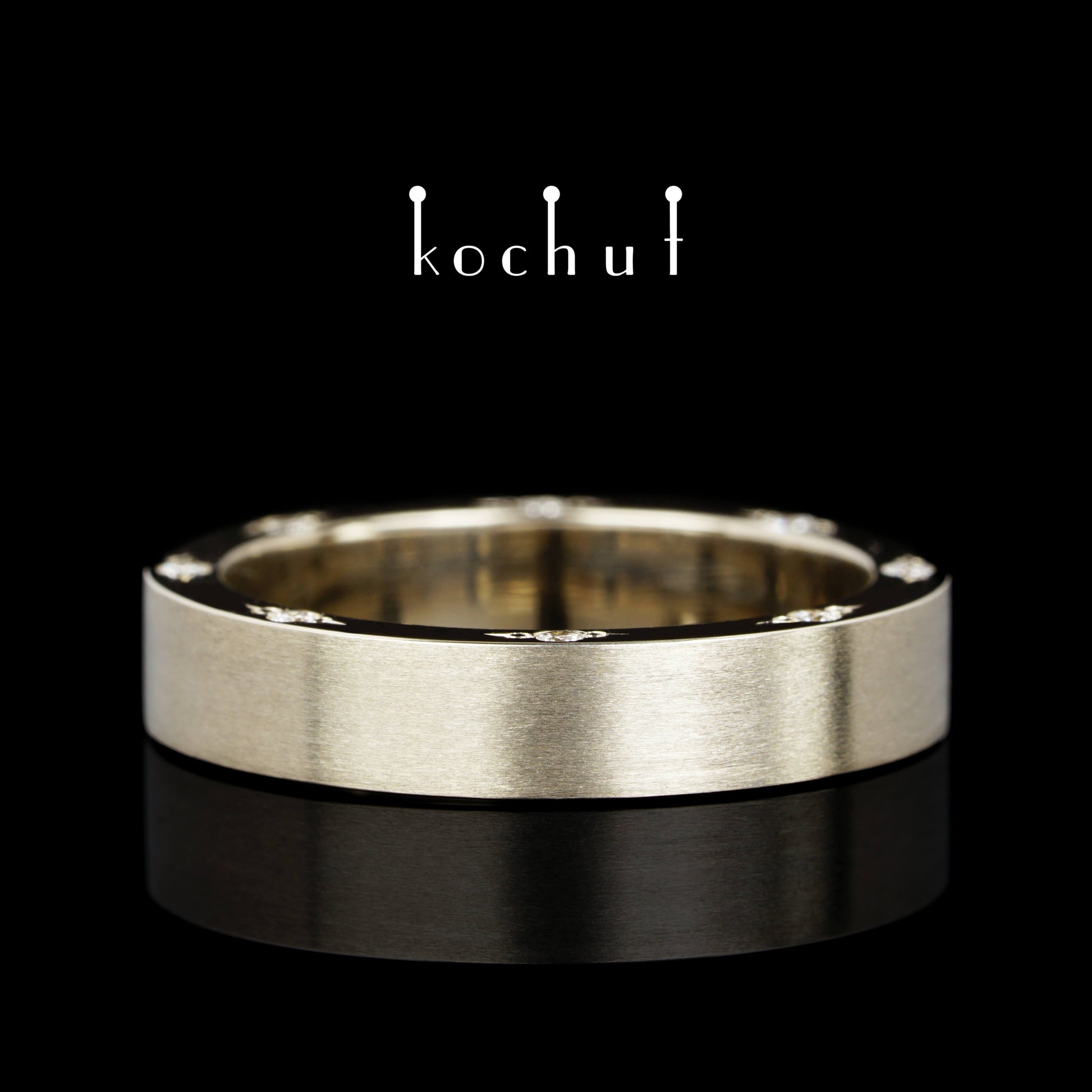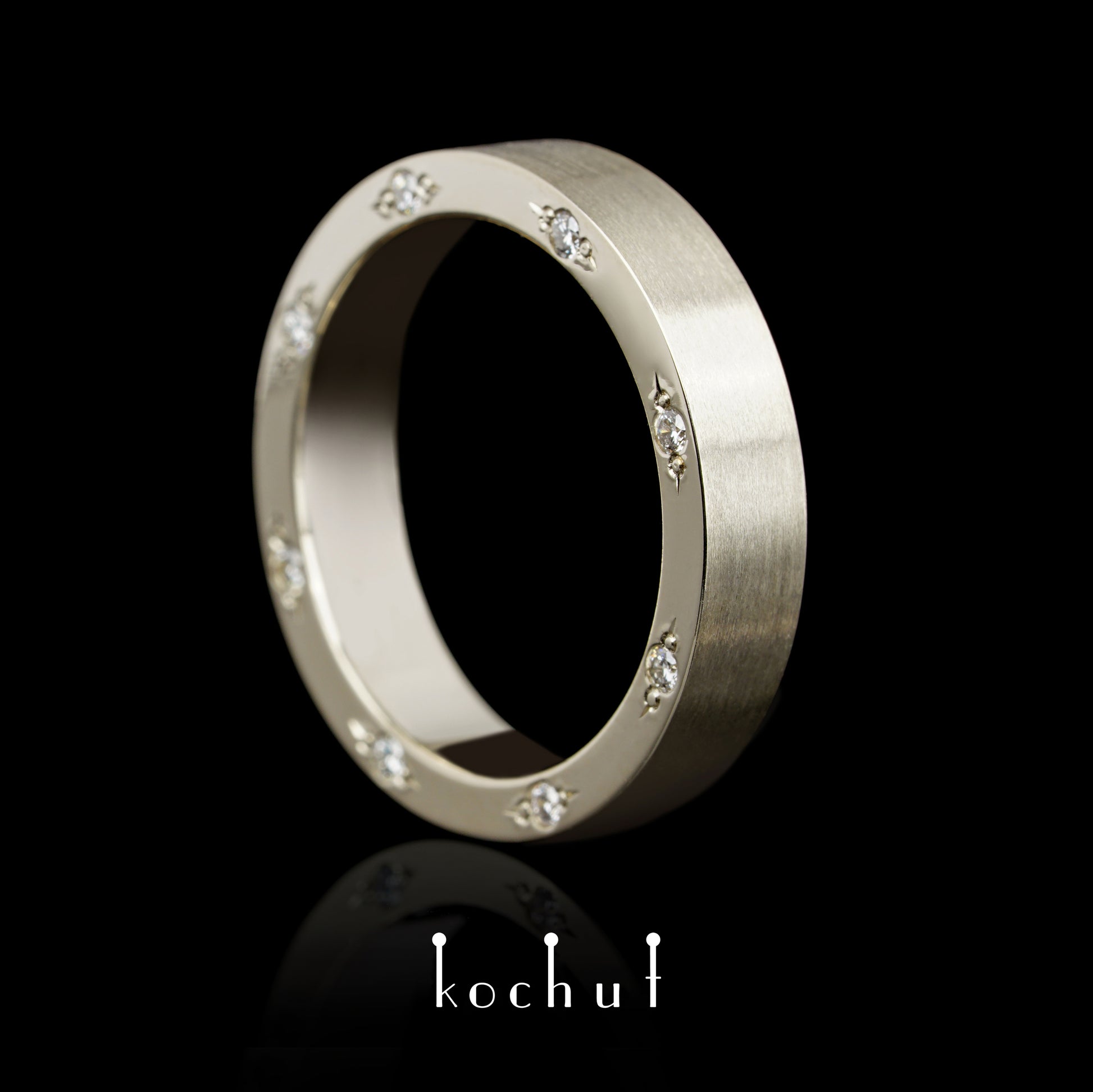 Aristocrats — flach geformter Ehering aus Weißgold mit Diamanten