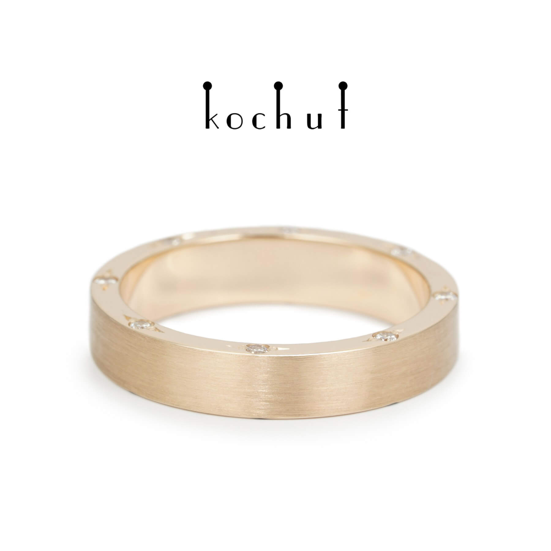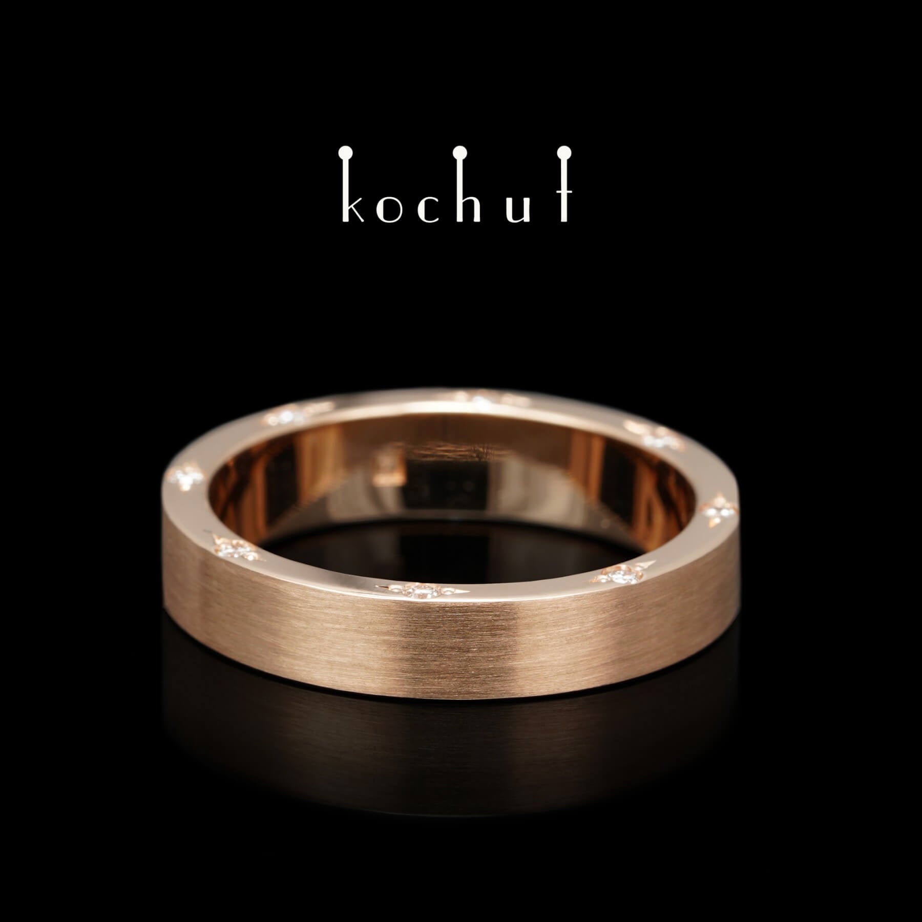 Aristokraten — flach geformter Ehering aus Rotgold und Diamanten