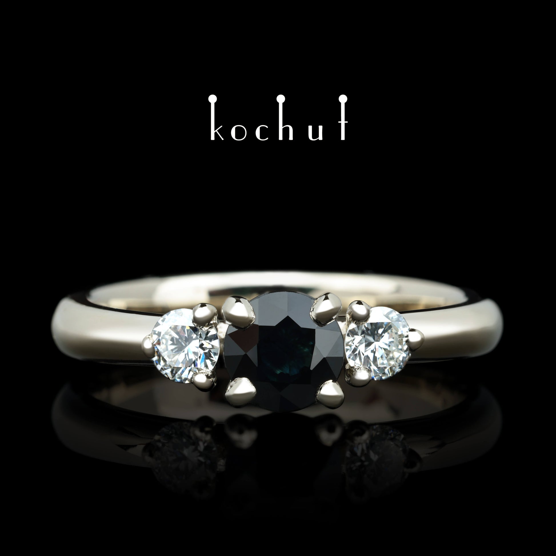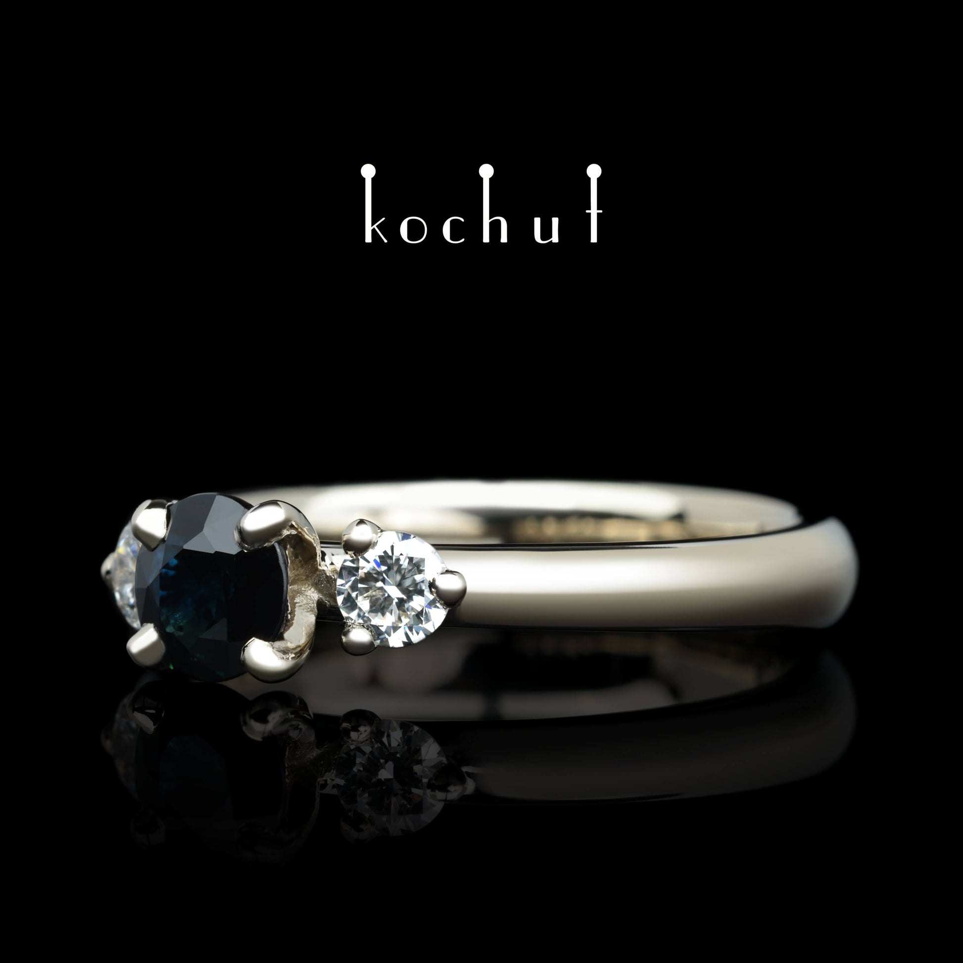 Athena — Verlobungsring aus Weißgold mit Saphir und Diamanten