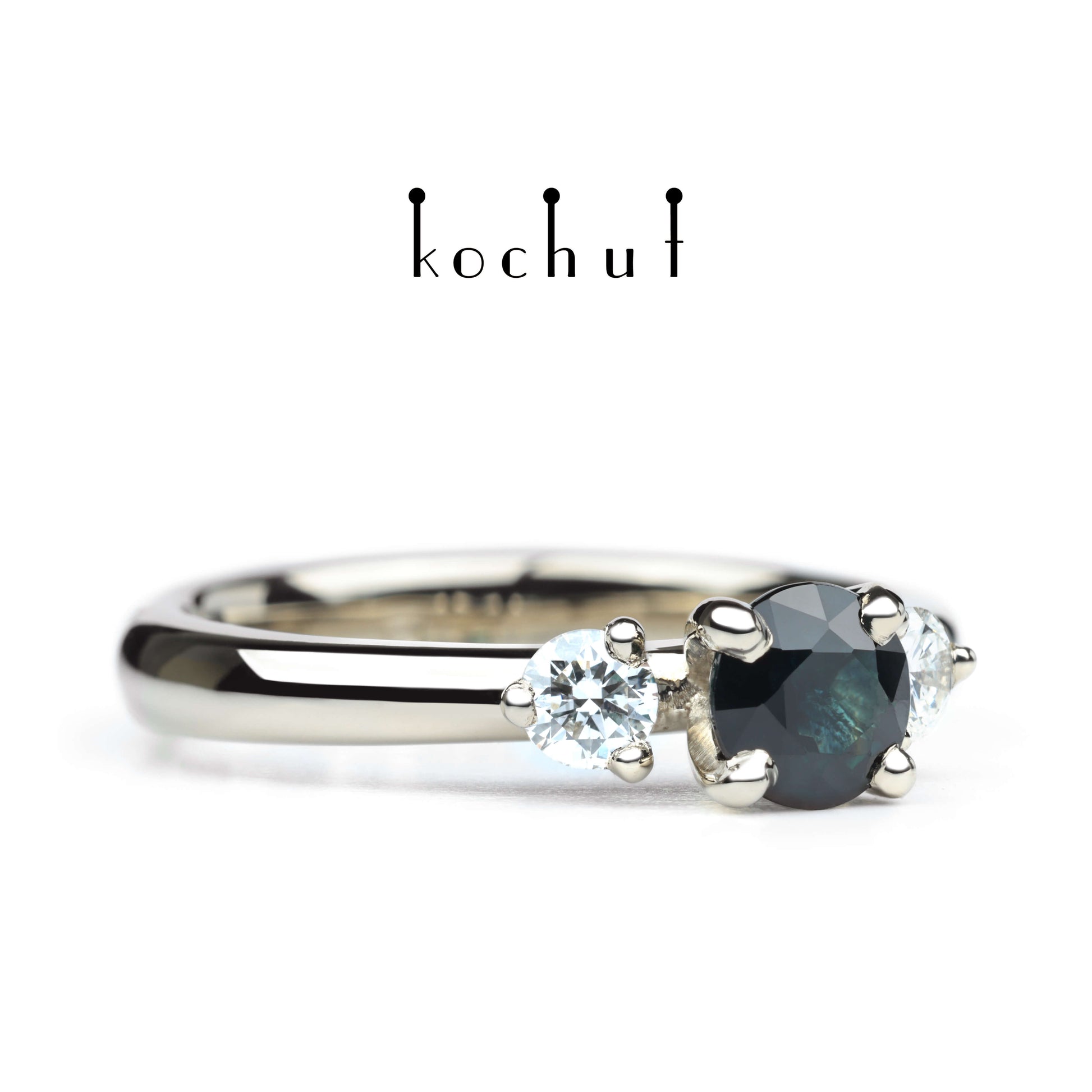 Ein atemberaubender Ring aus Weißgold. Ein Saphir sitzt in der Mitte, und Diamanten — an den Rändern. Weibliche Schönheit ist ein Edelstein, den die Göttin der Welt nur durch ihre Anwesenheit schenkt.