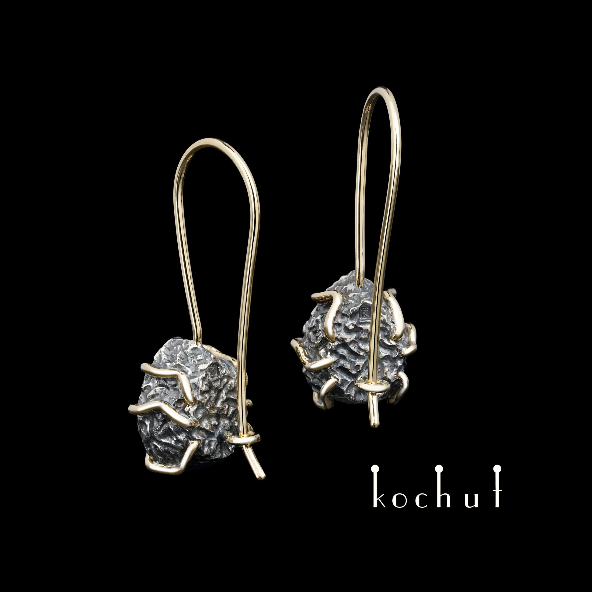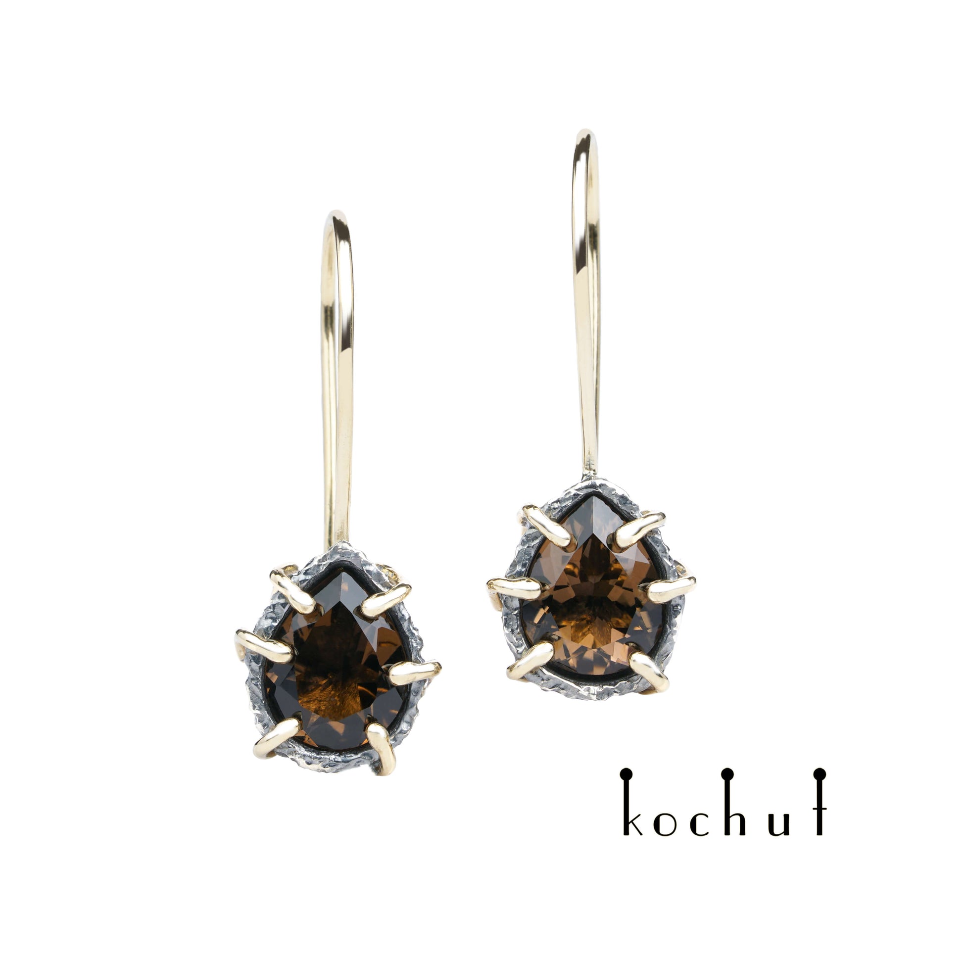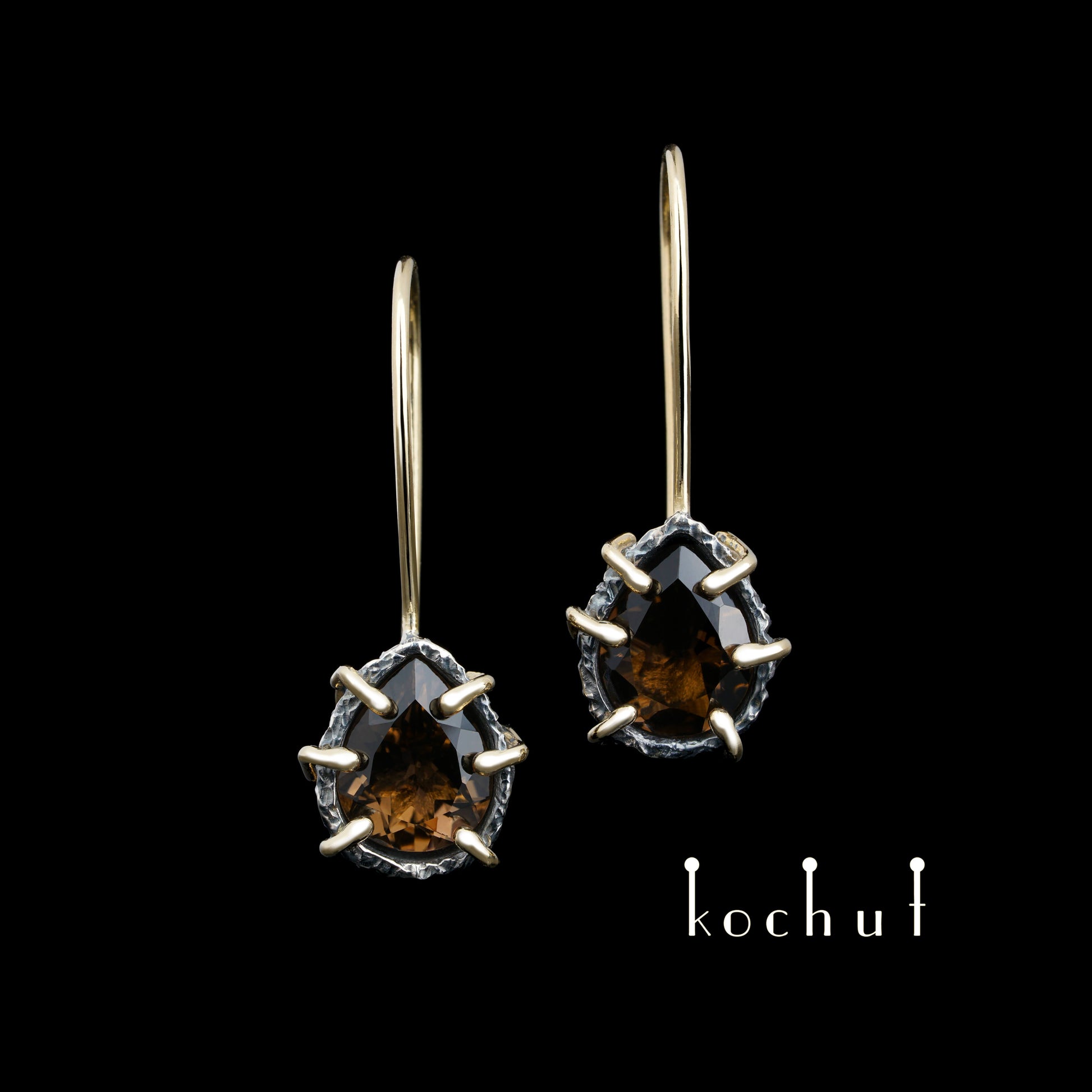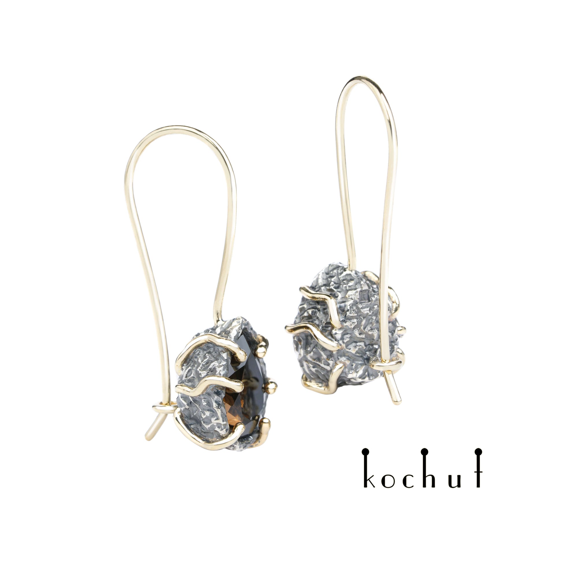 Aurora — Ohrringe aus oxidiertem Silber und Gelbgold mit Rauchquarz