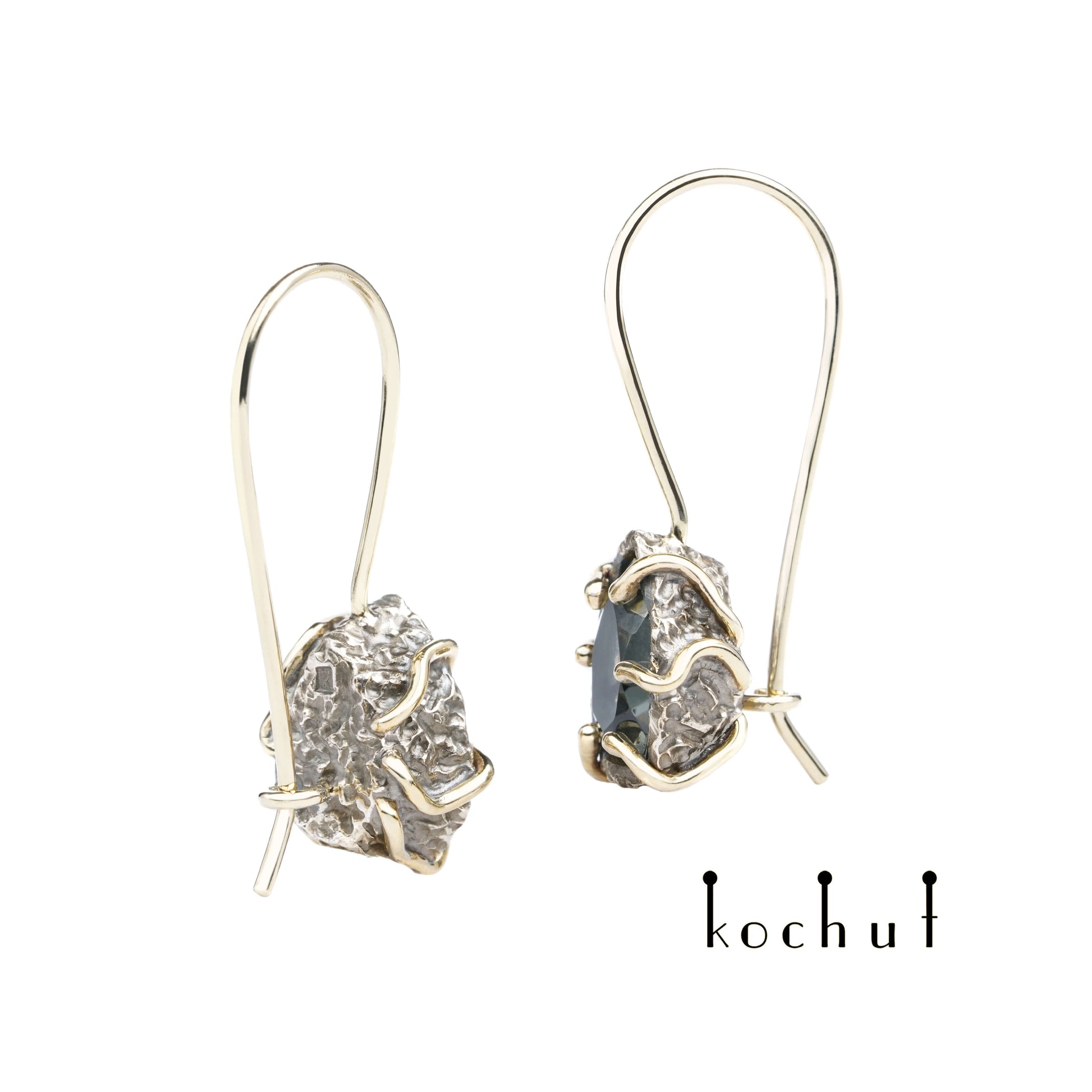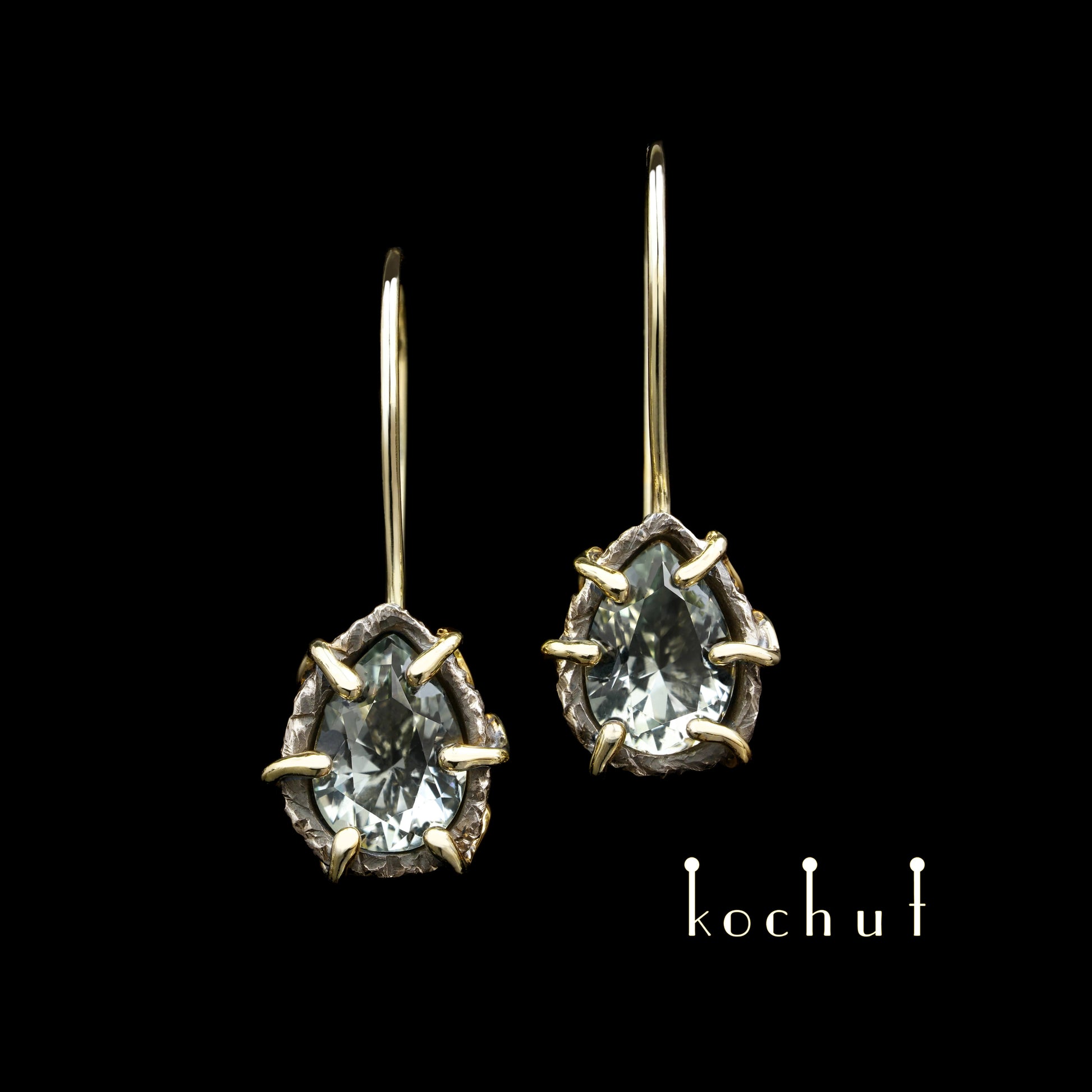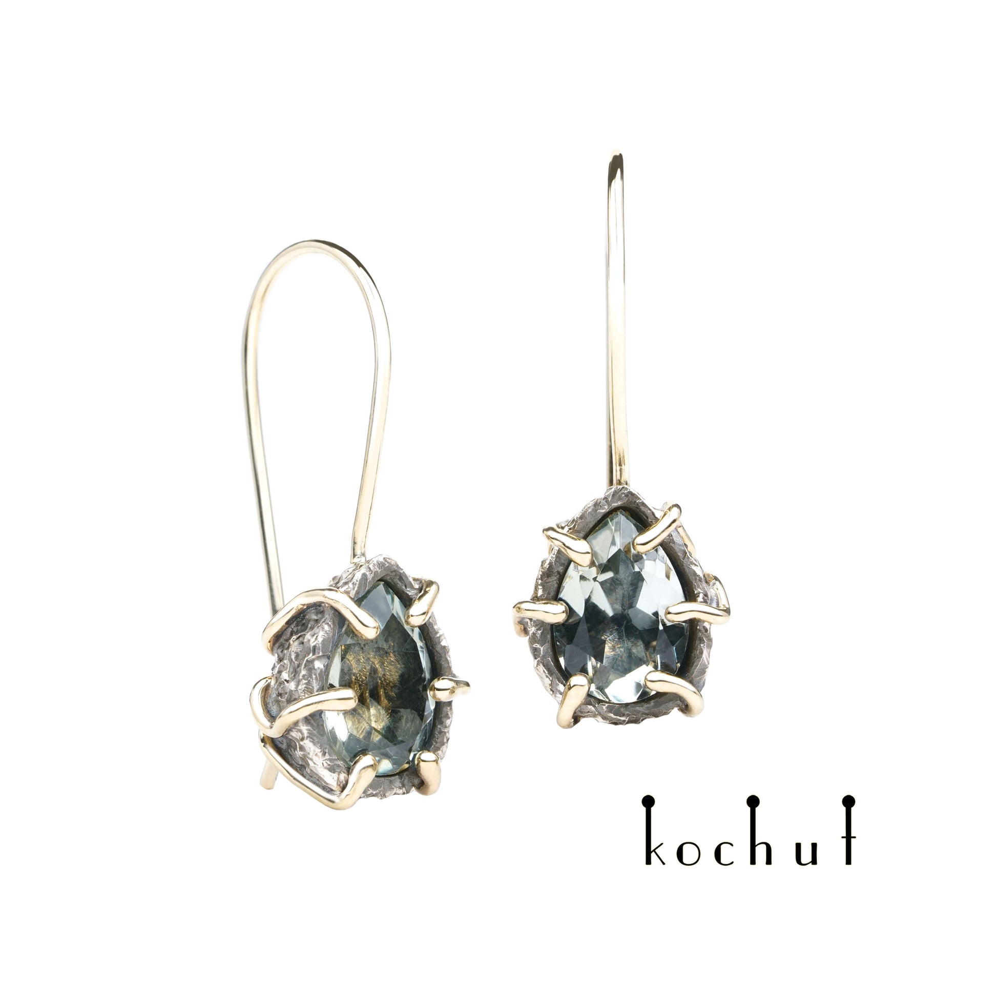 Aurora — Ohrringe aus Weiß- und Gelbgold mit grünen Amethysten, überzogen mit schwarzem Rhodium