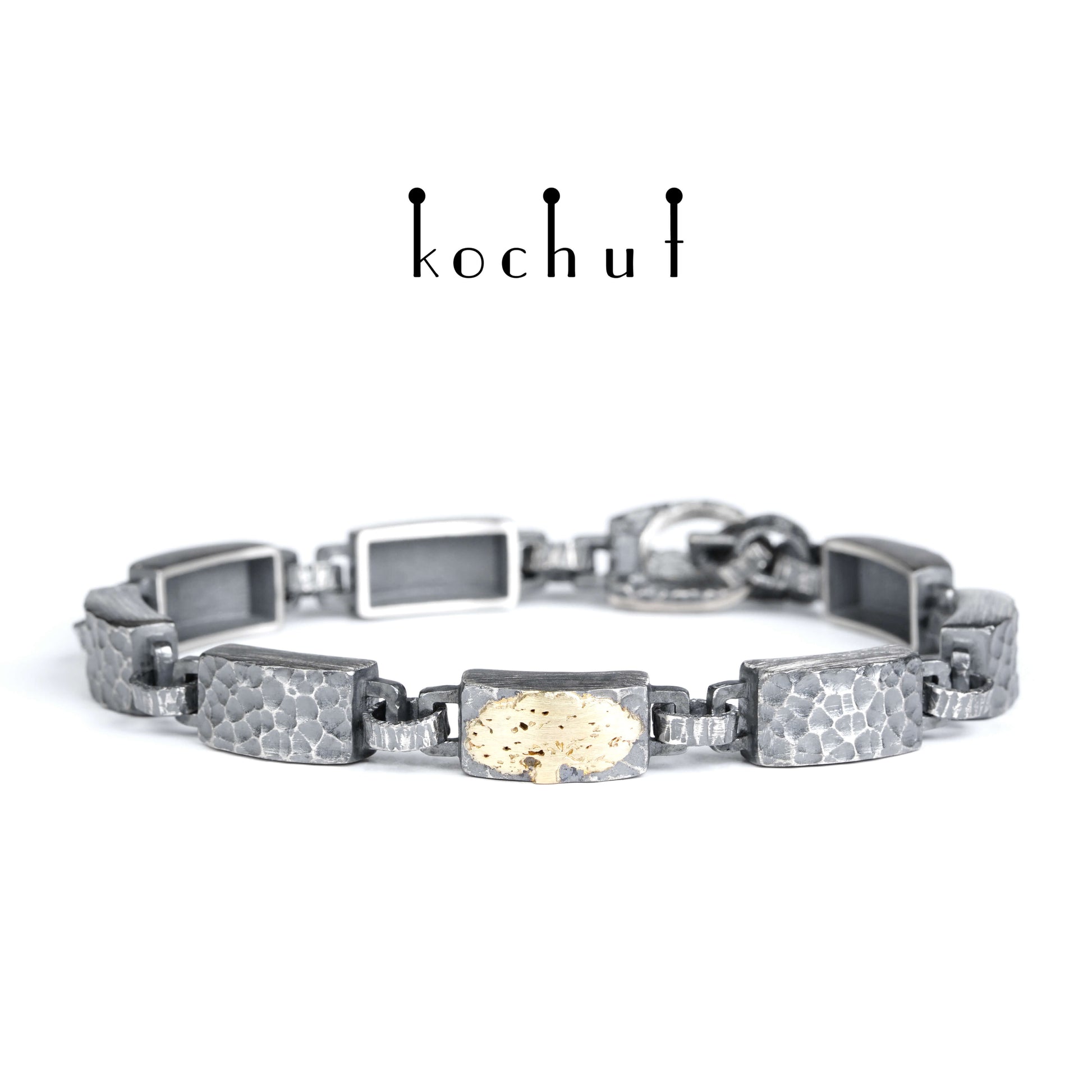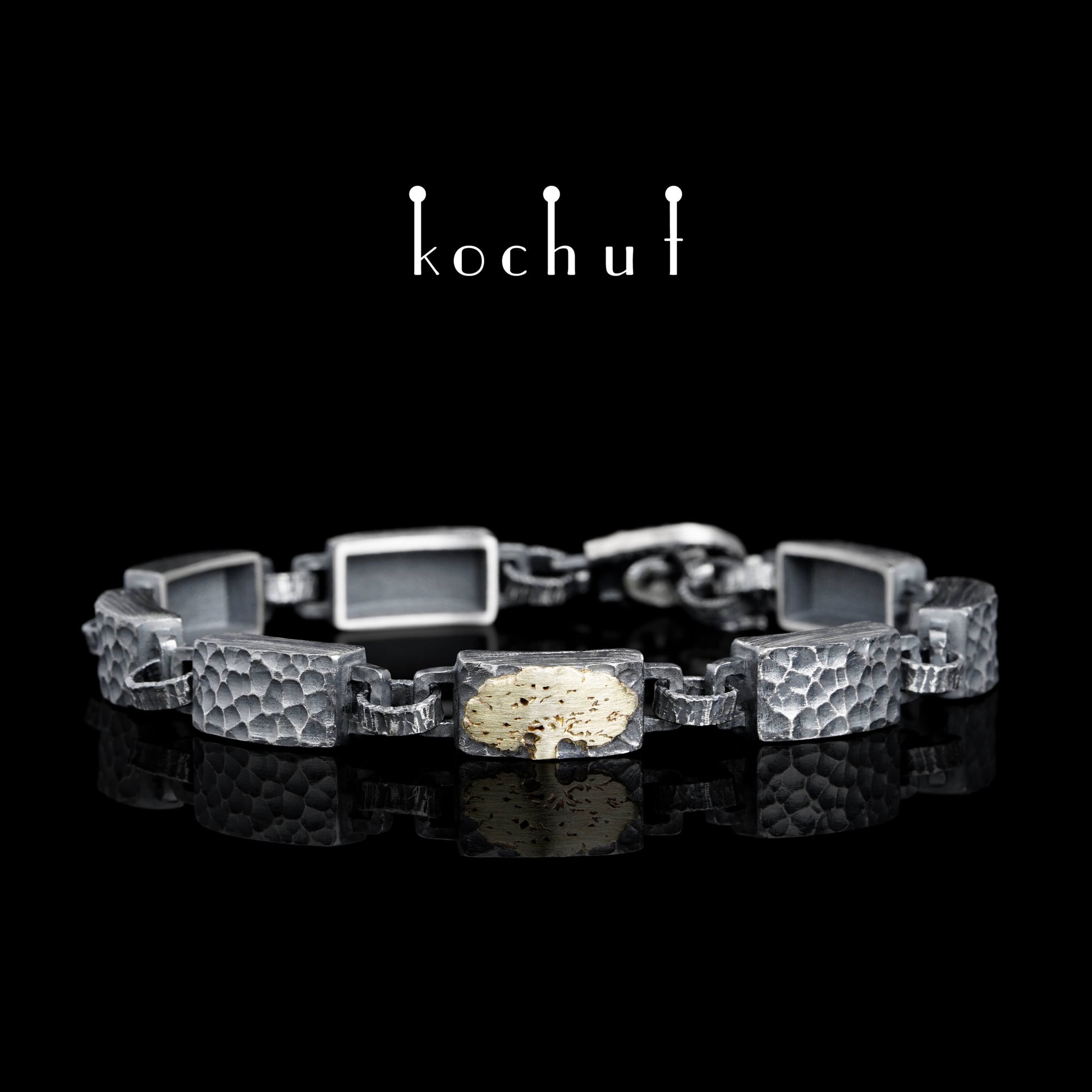 Baum des Lebens — Armband aus oxidiertem Silber und Gelbgold