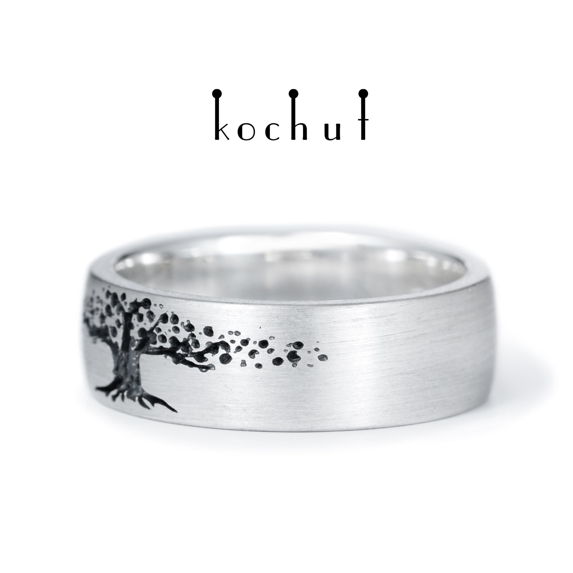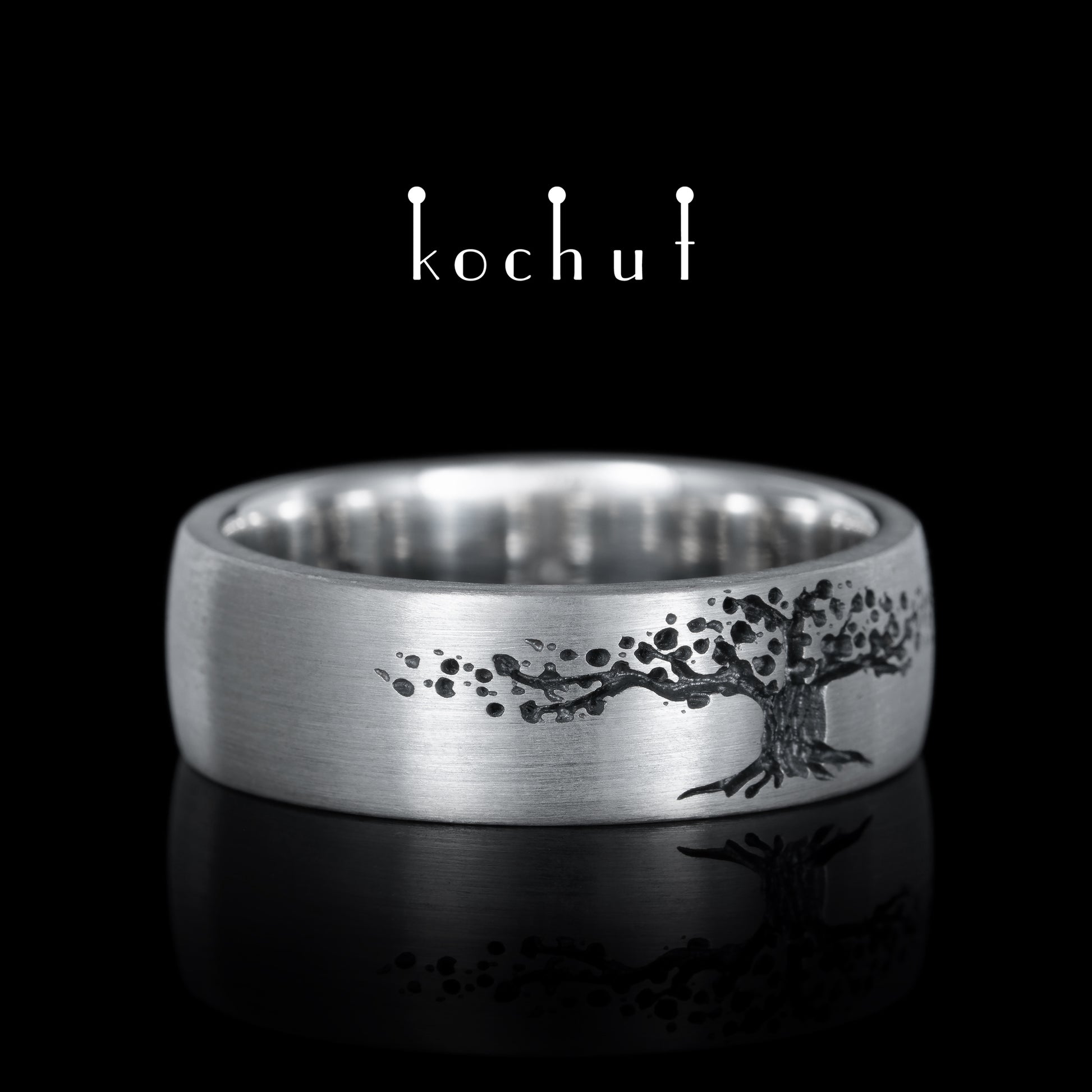 Baum des Lebens — Ehering aus oxidiertem Silber