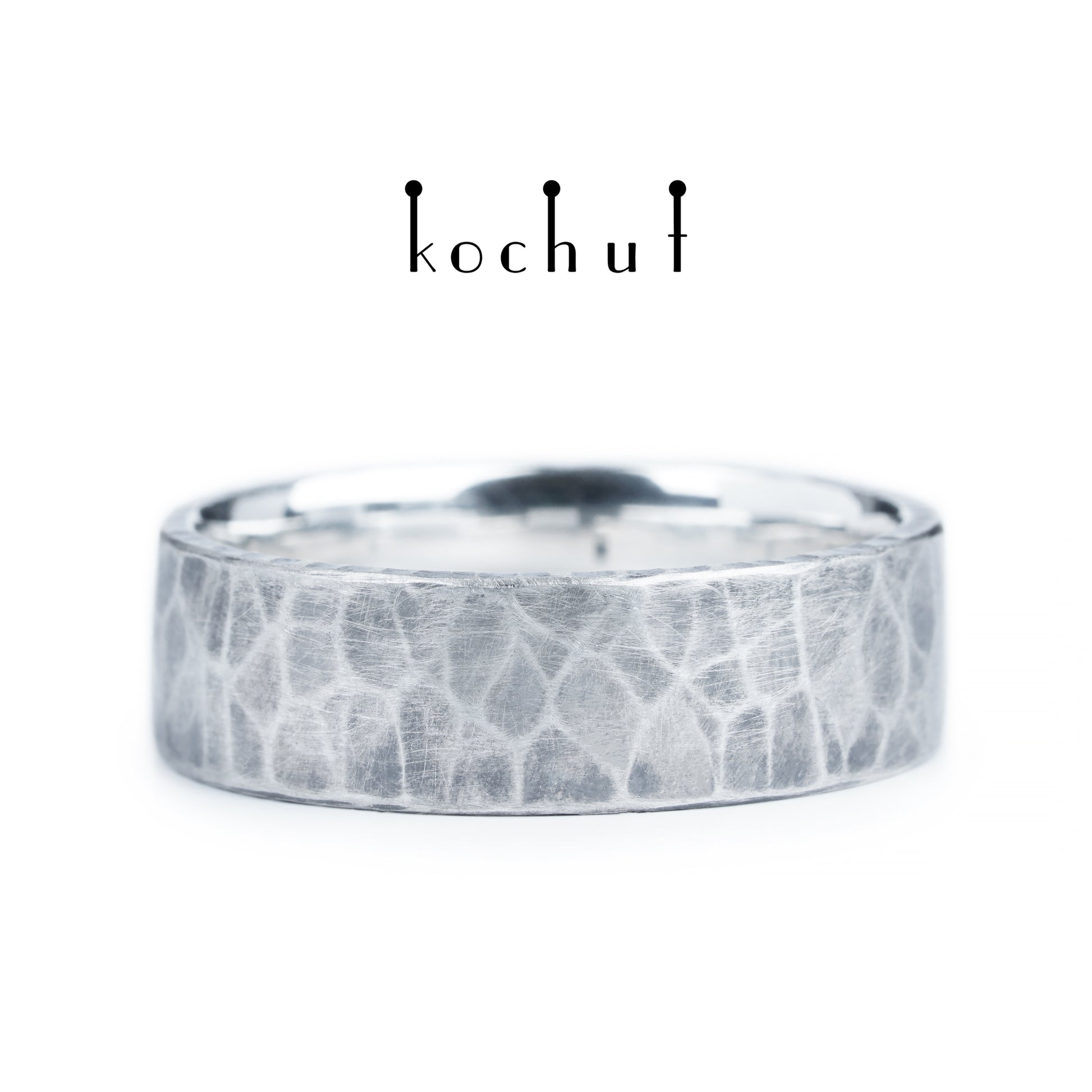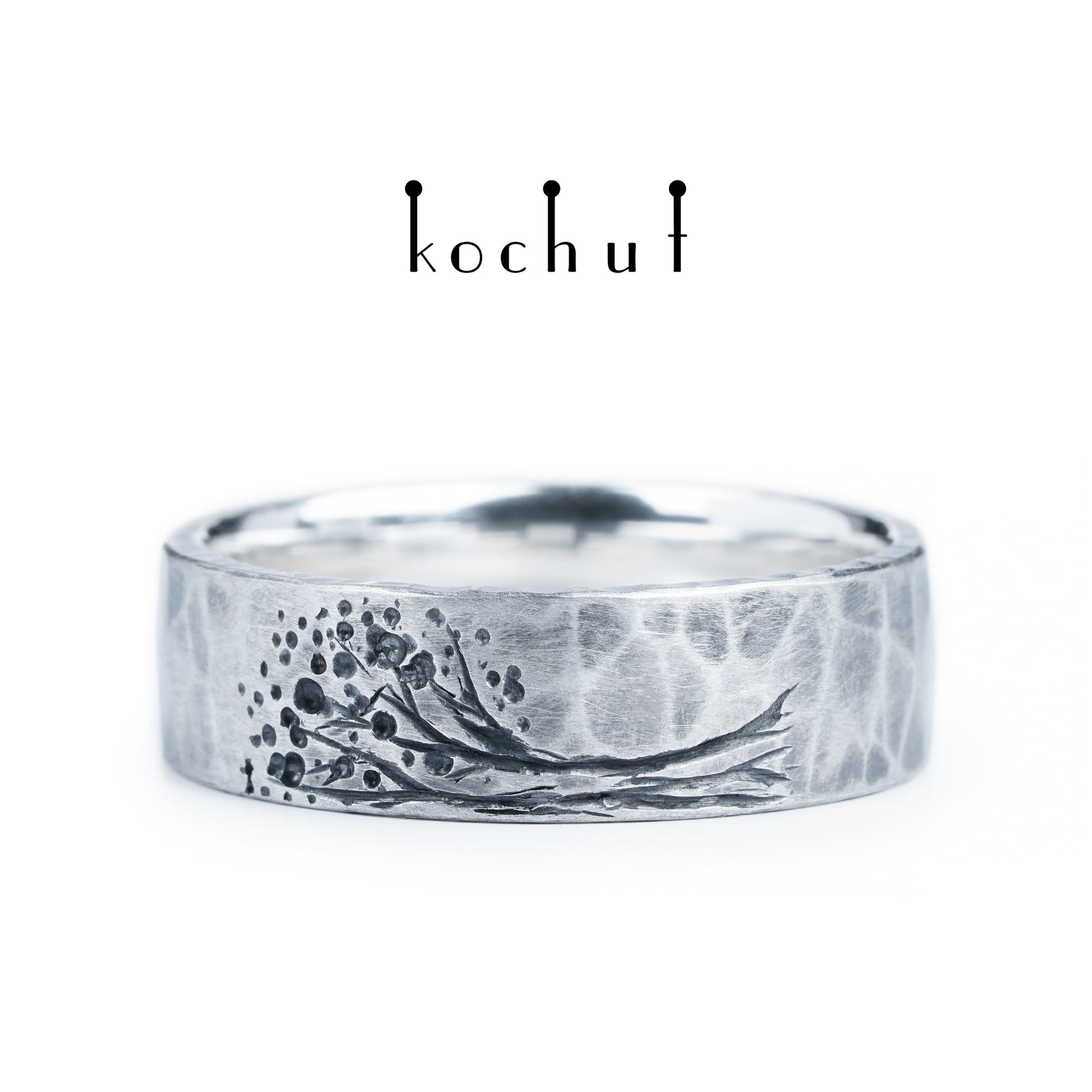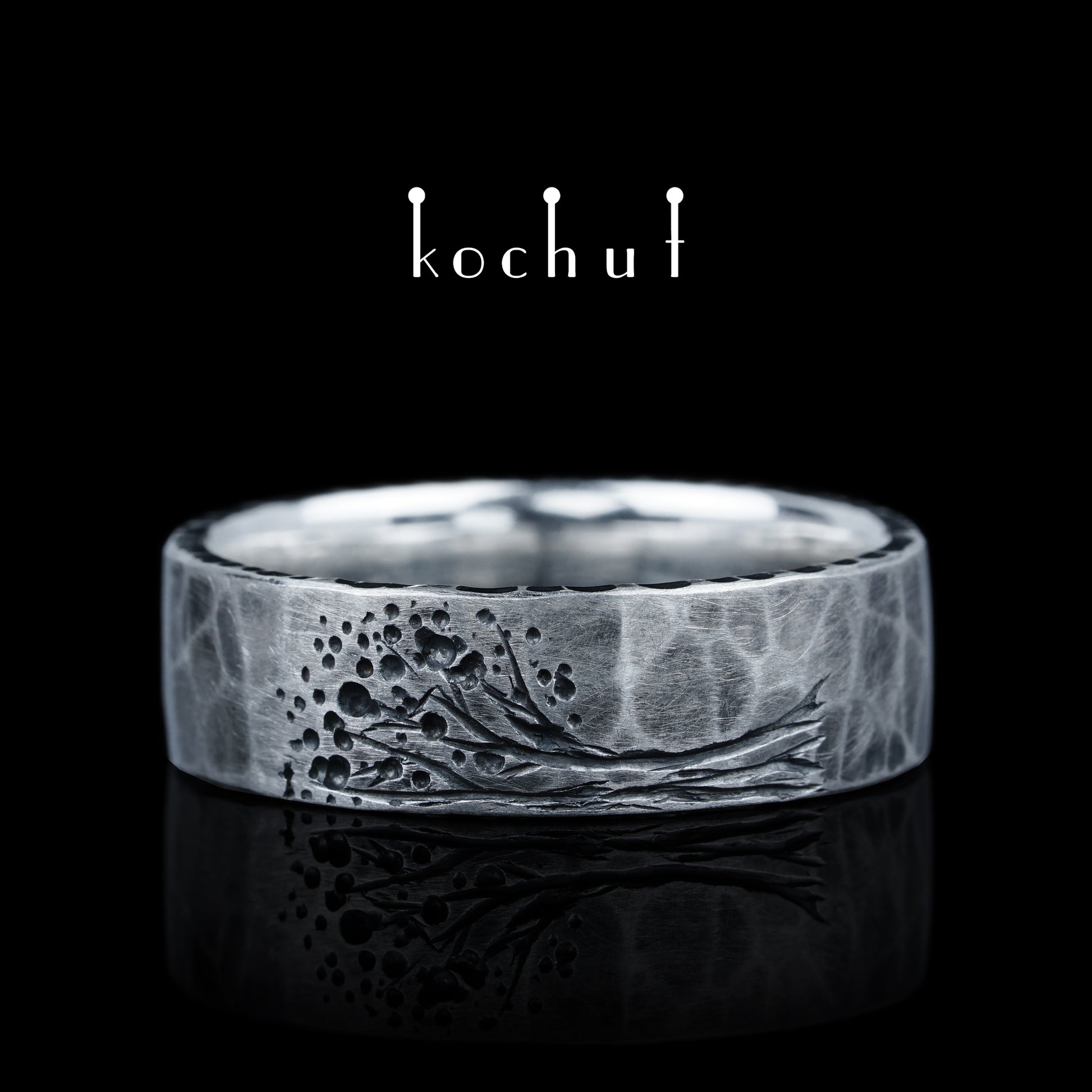 Baum des Lebens: halb geschmiedetes Licht — Ehering aus oxidiertem Silber