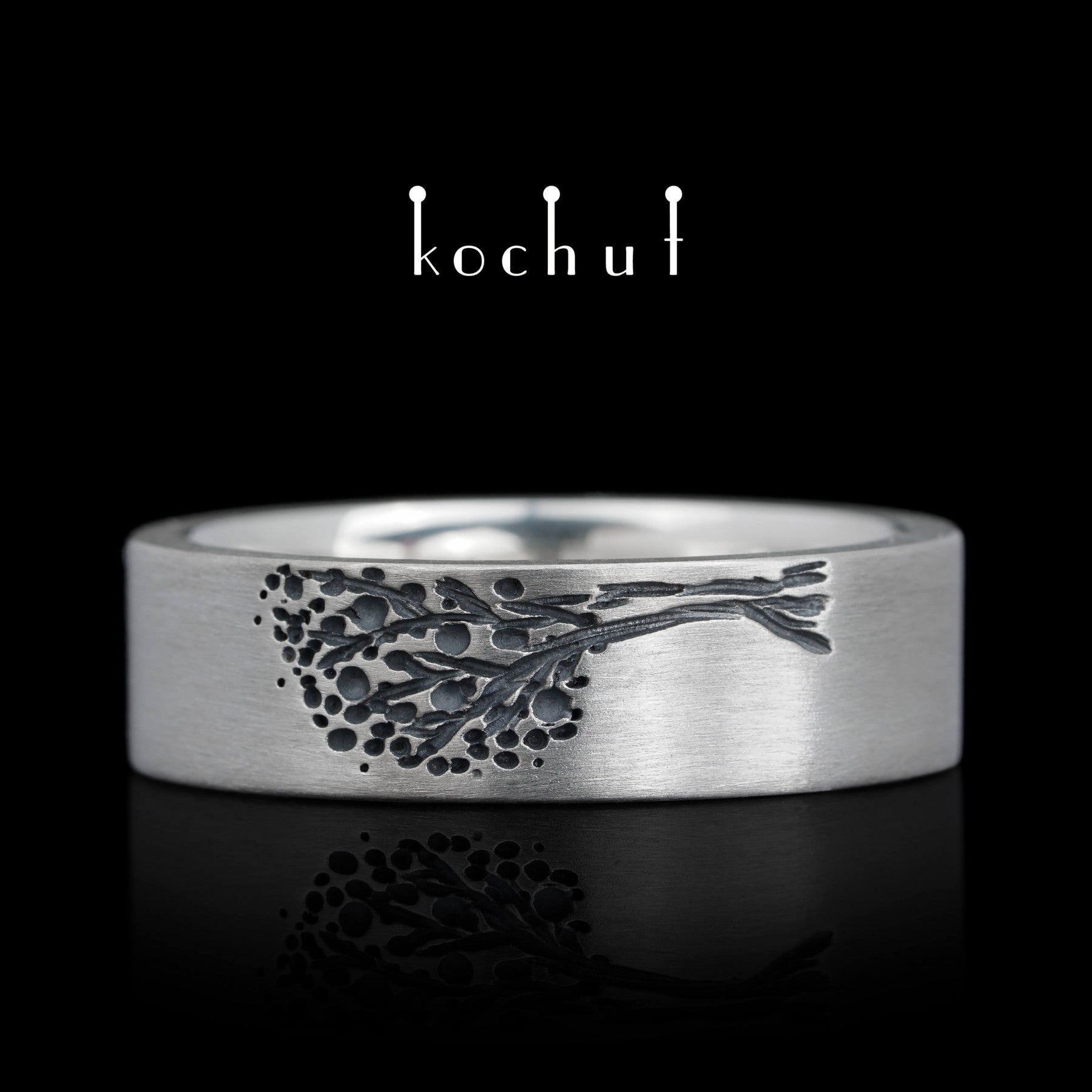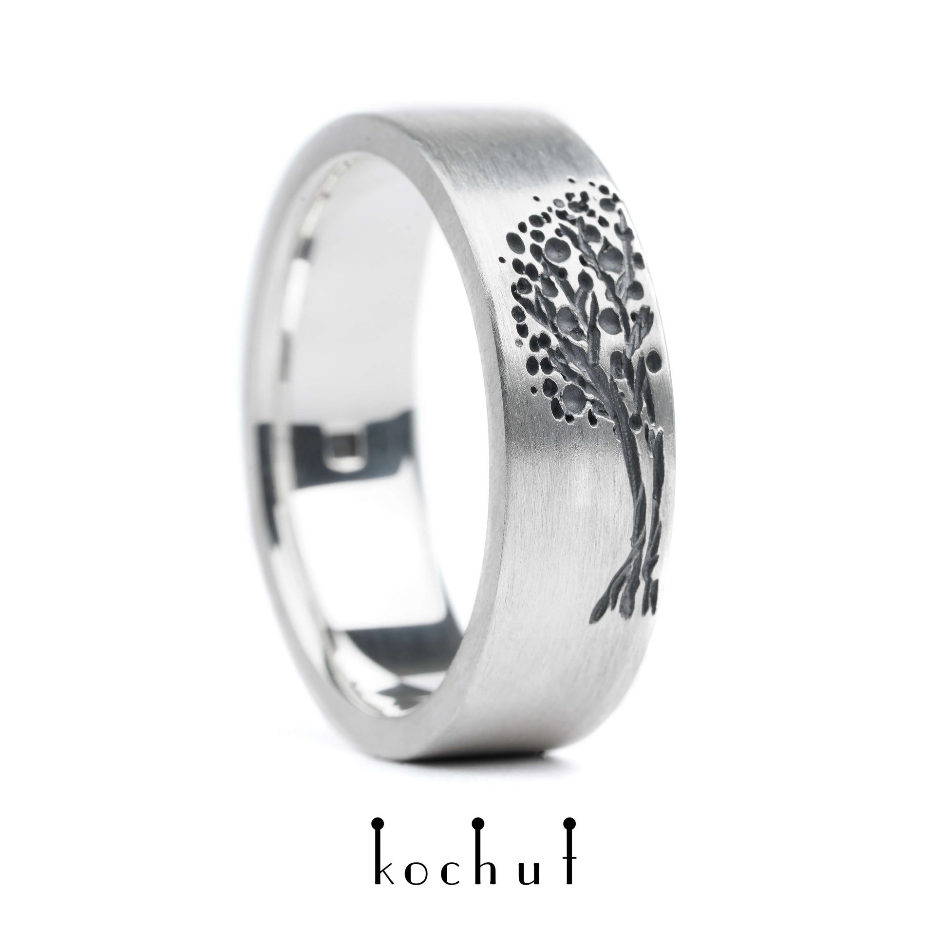 Baum des Lebens: Halbringe — Ehering aus oxidiertem Silber