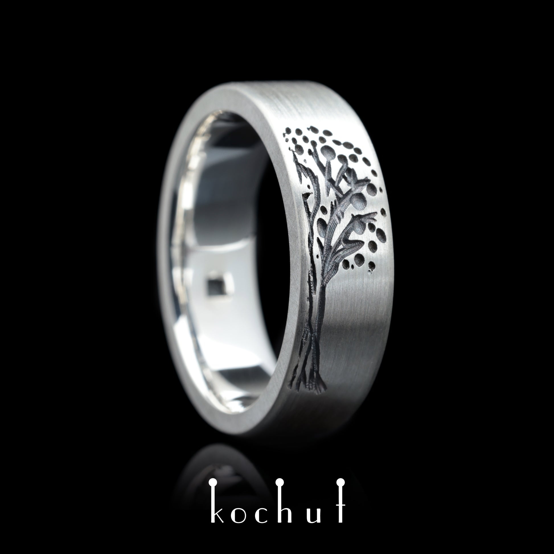 Baum des Lebens: Halbringe — Ehering aus oxidiertem Silber