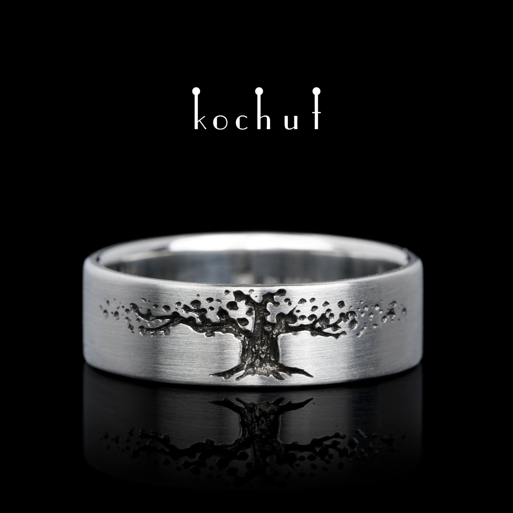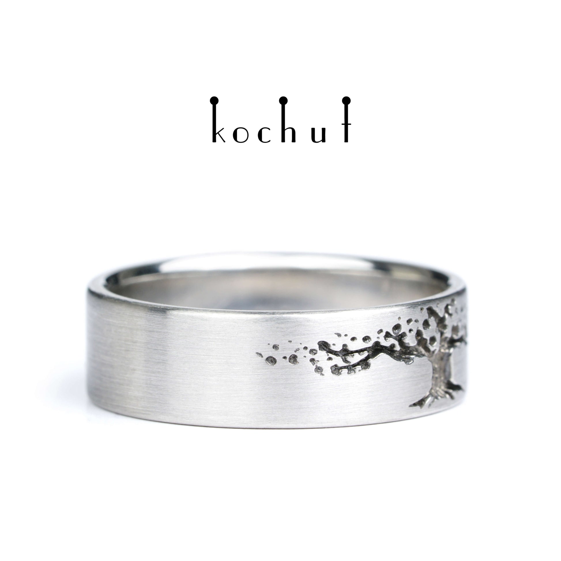 Baum des Lebens — Platin-Ehering mit schwarzem Rhodium beschichtet