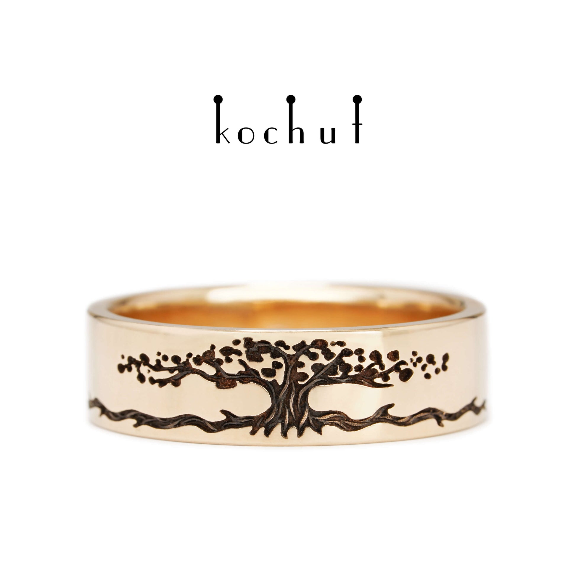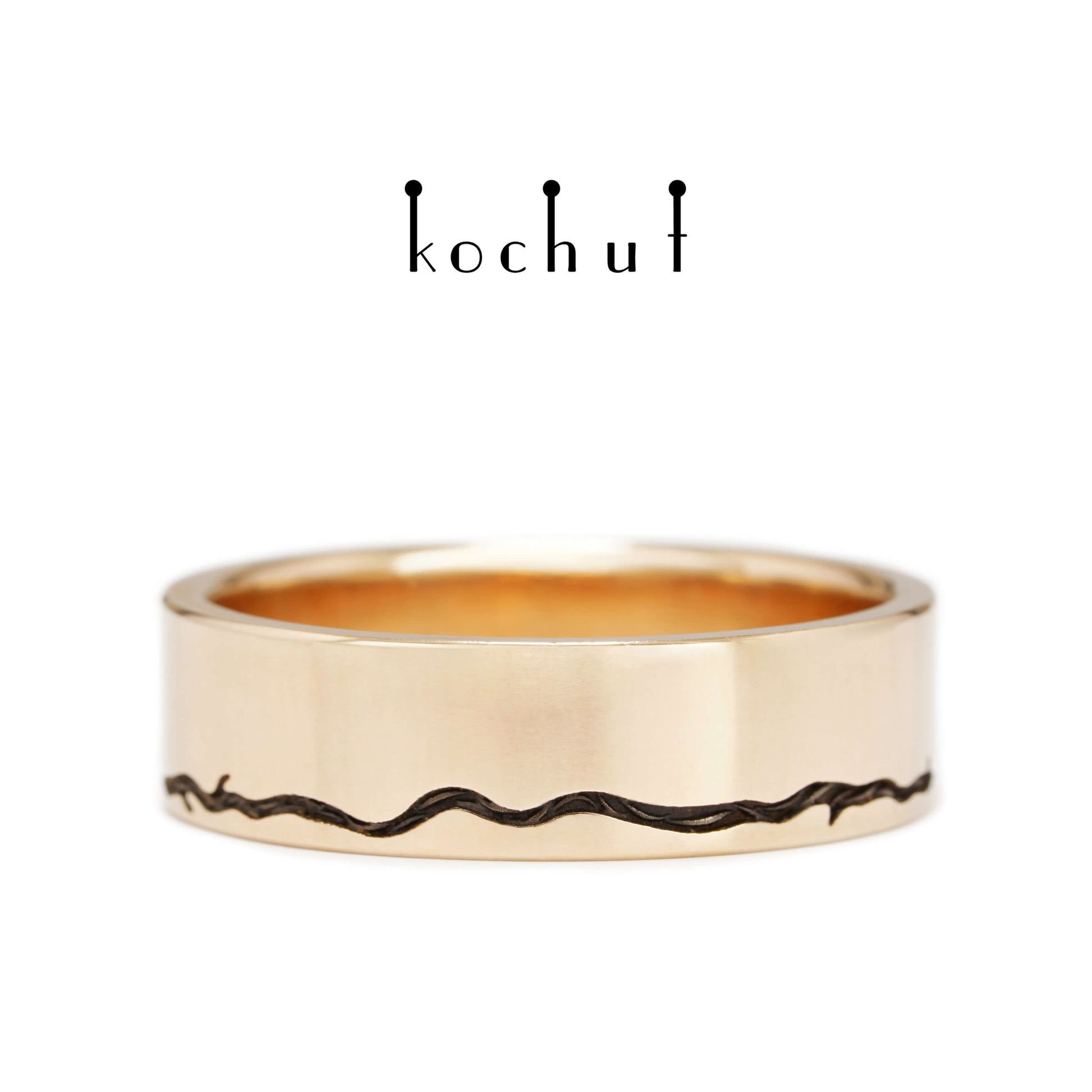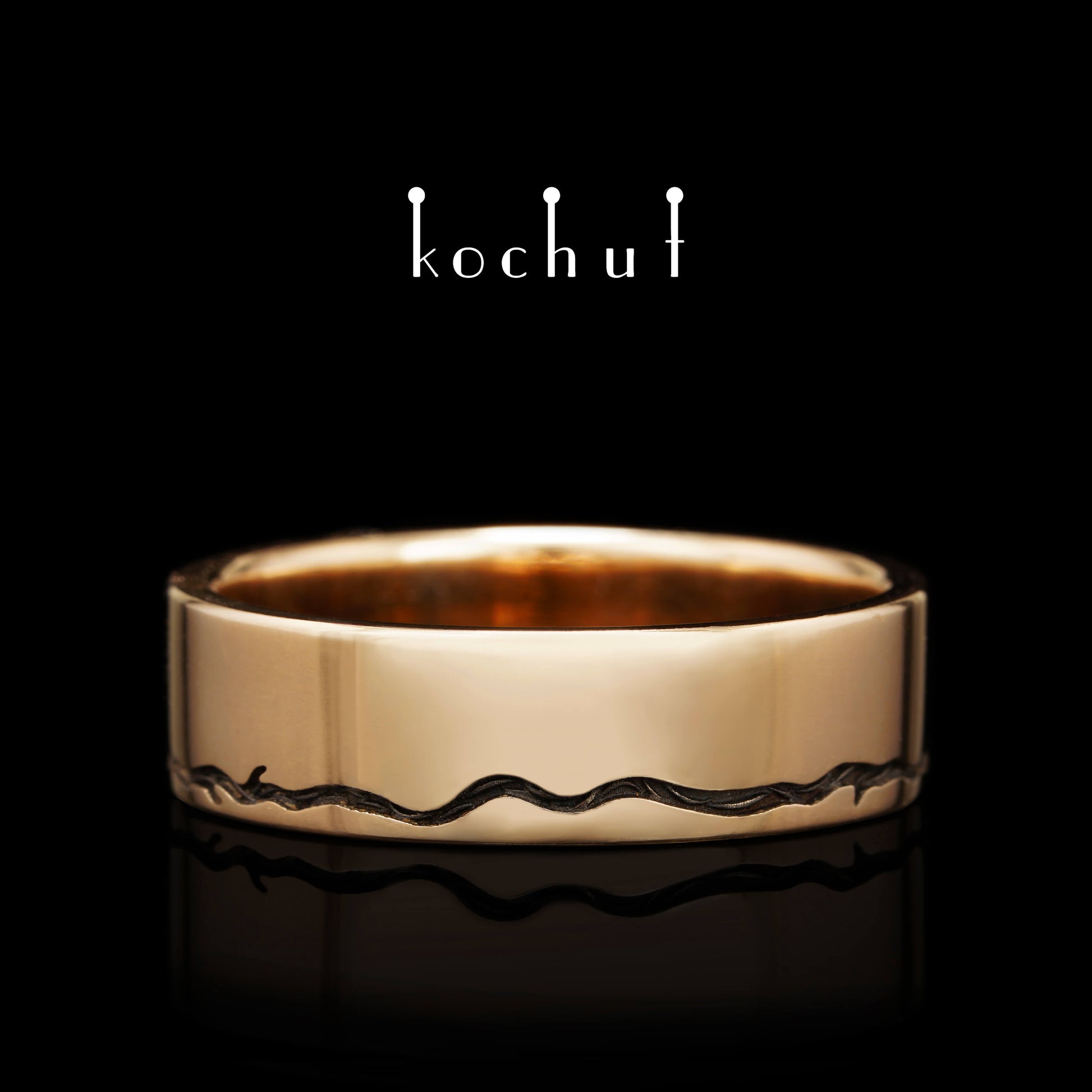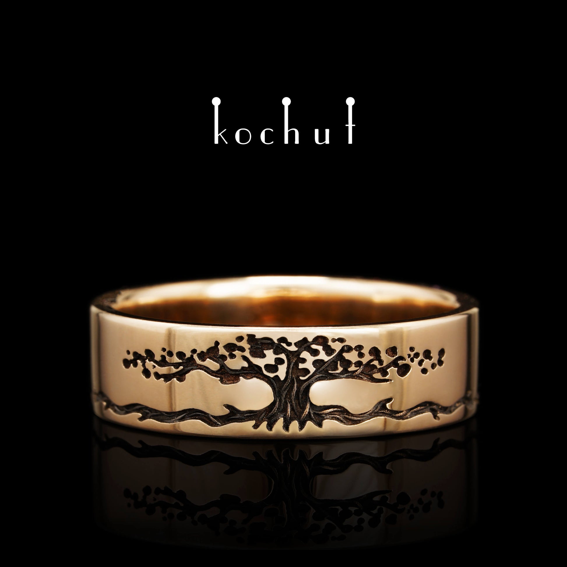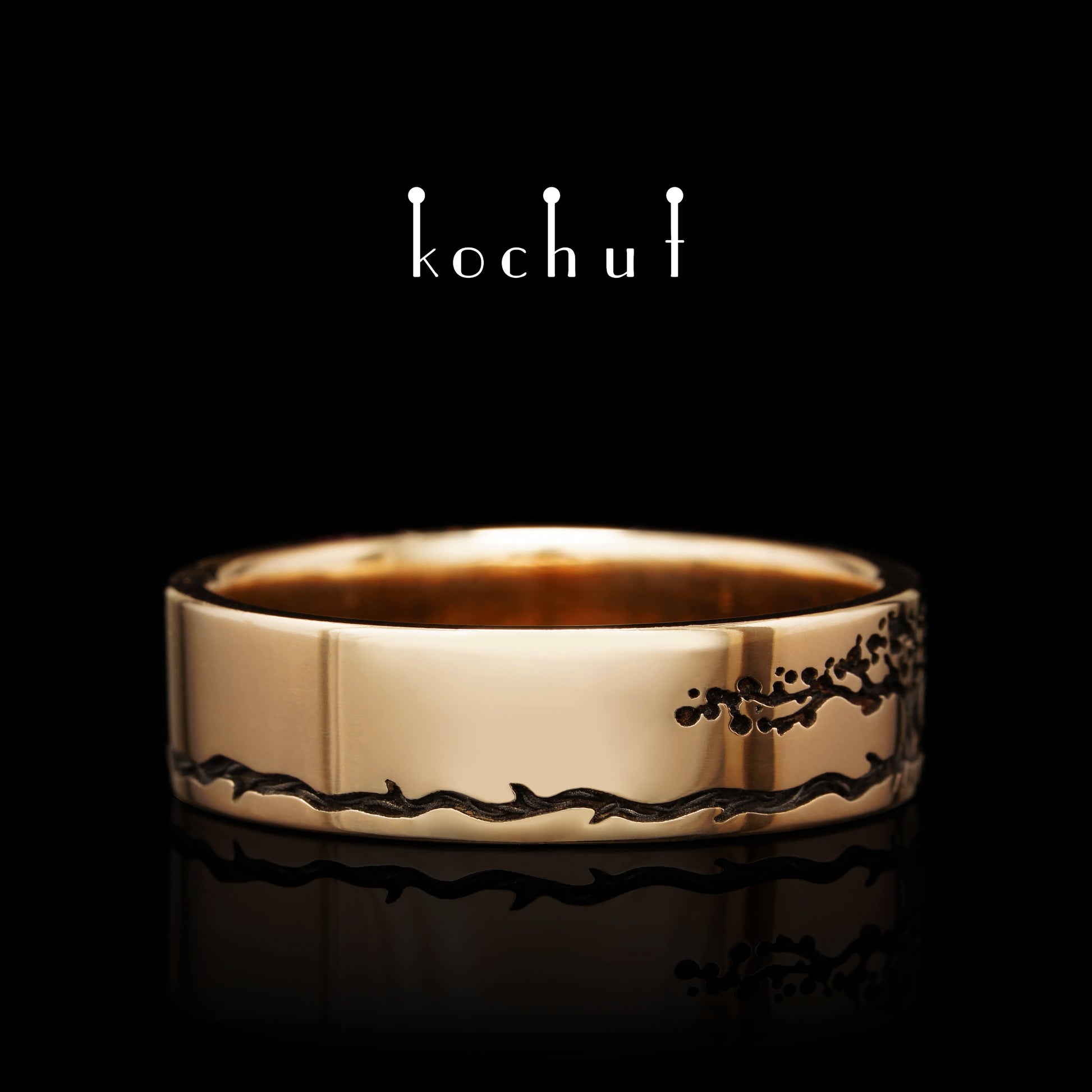 Baum des Lebens: Stiele — glänzender Ehering aus Rotgold mit schwarzem Rhodium überzogen