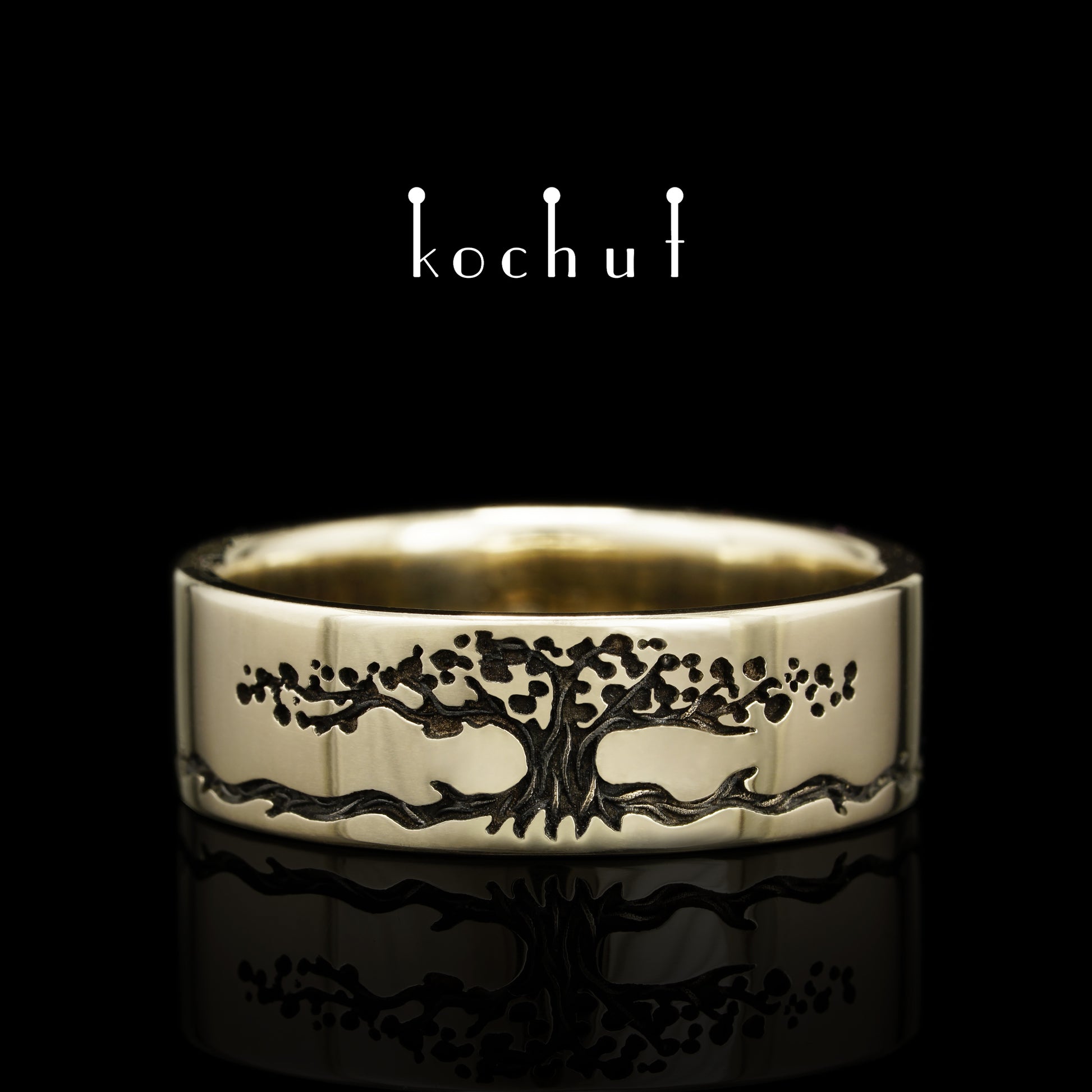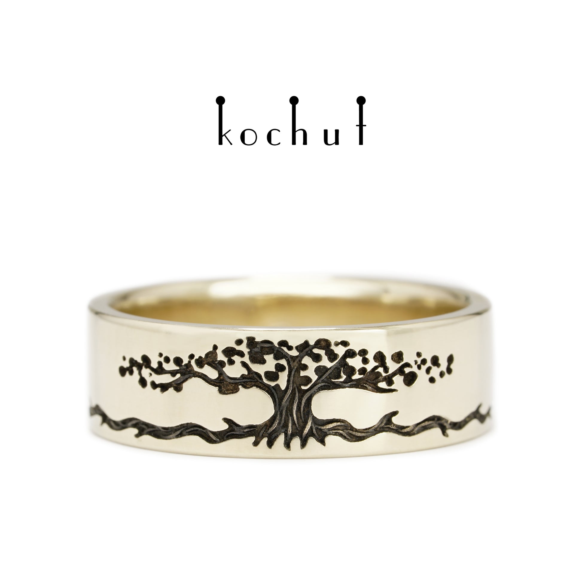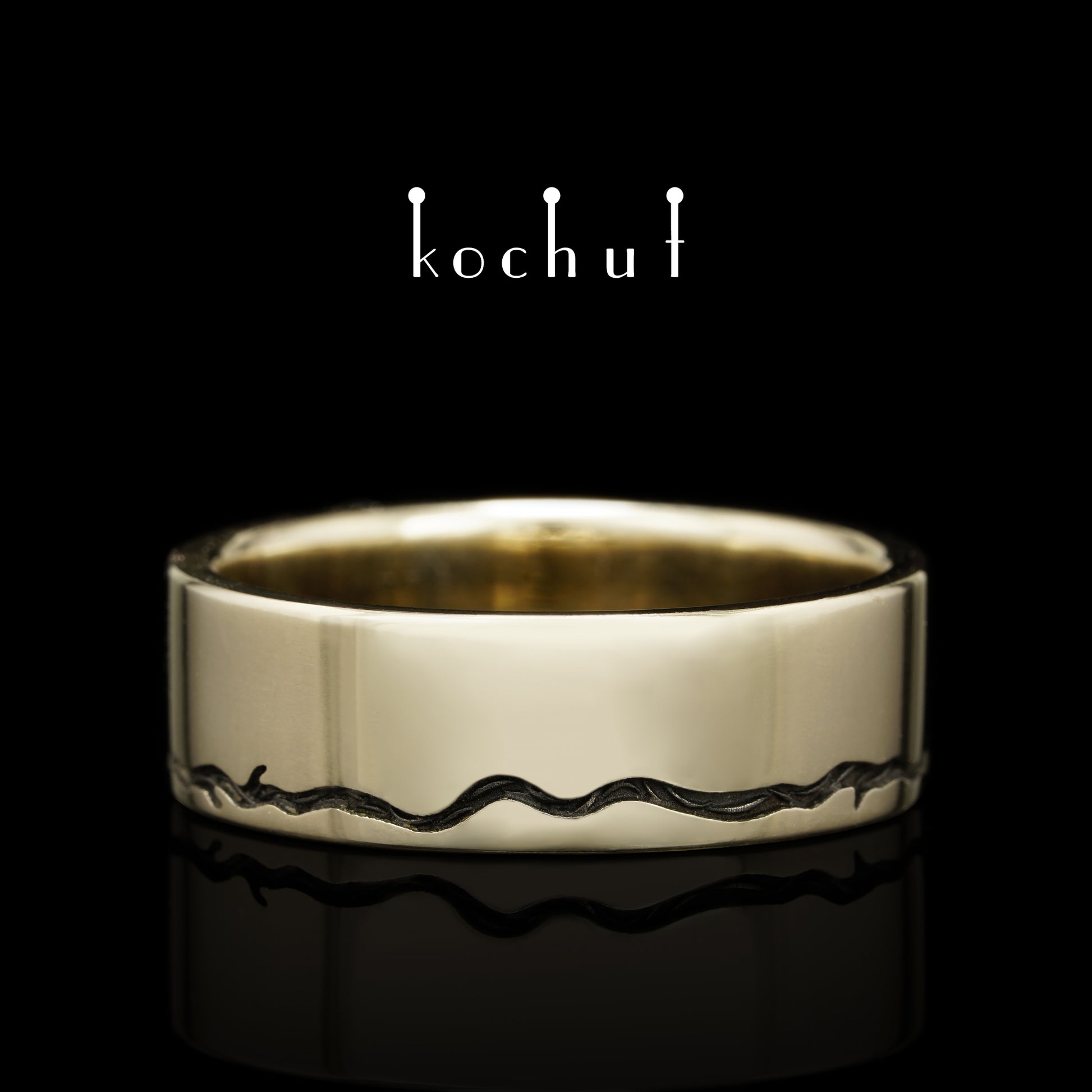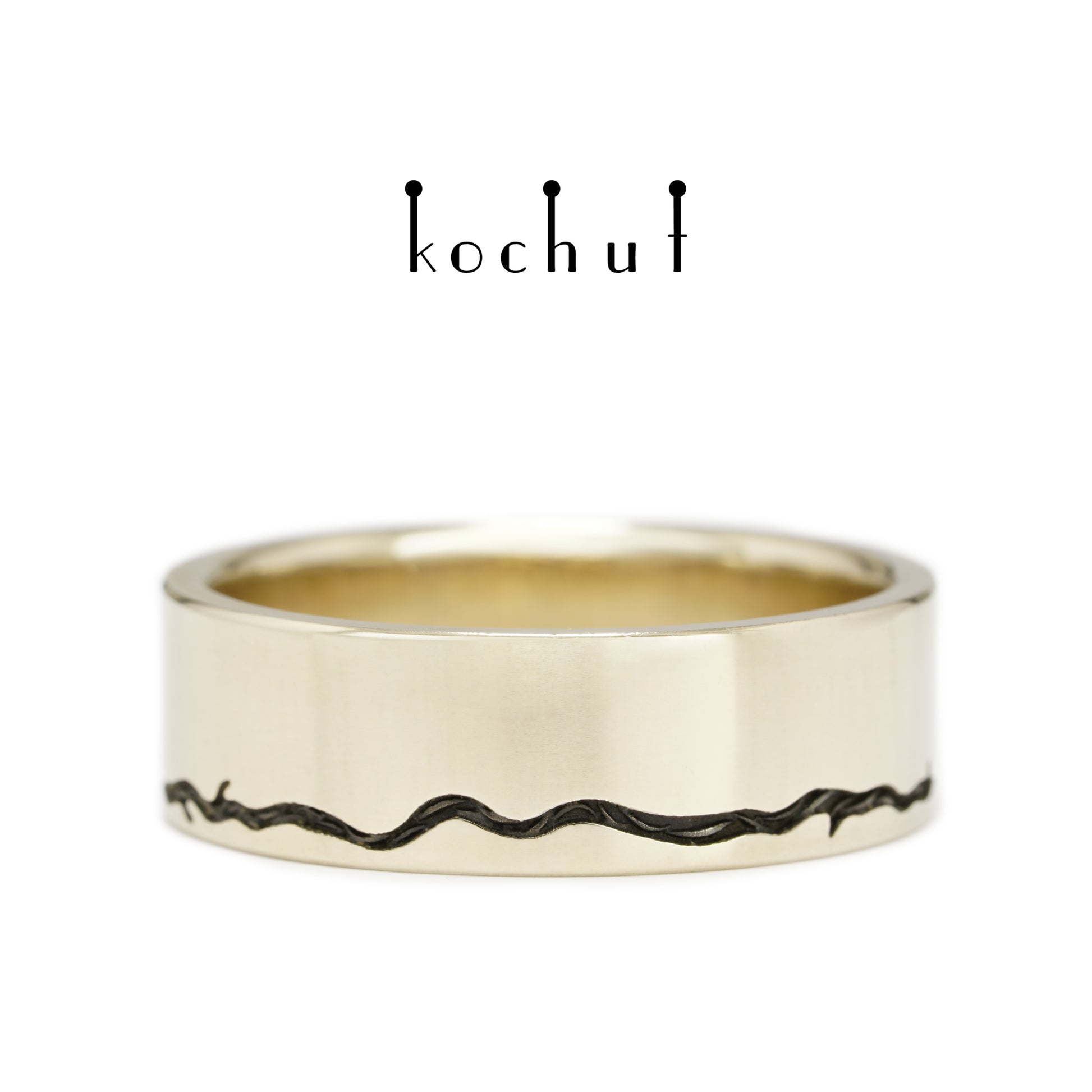 Baum des Lebens: Stiele — glänzender Ehering aus Weißgold, überzogen mit schwarzem Rhodium