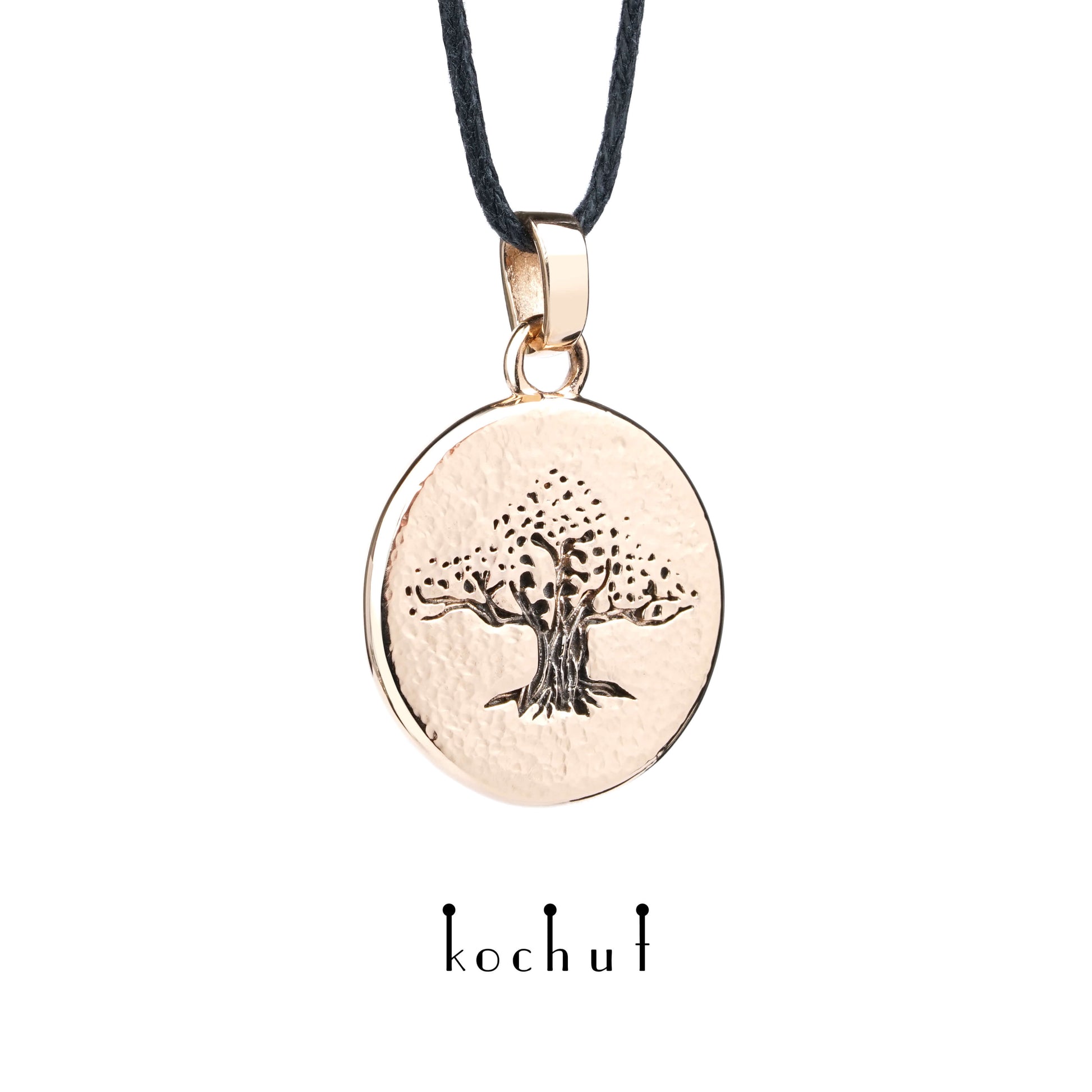 Baum des Wissens — Anhänger aus Rotgold, überzogen mit schwarzem Rhodium