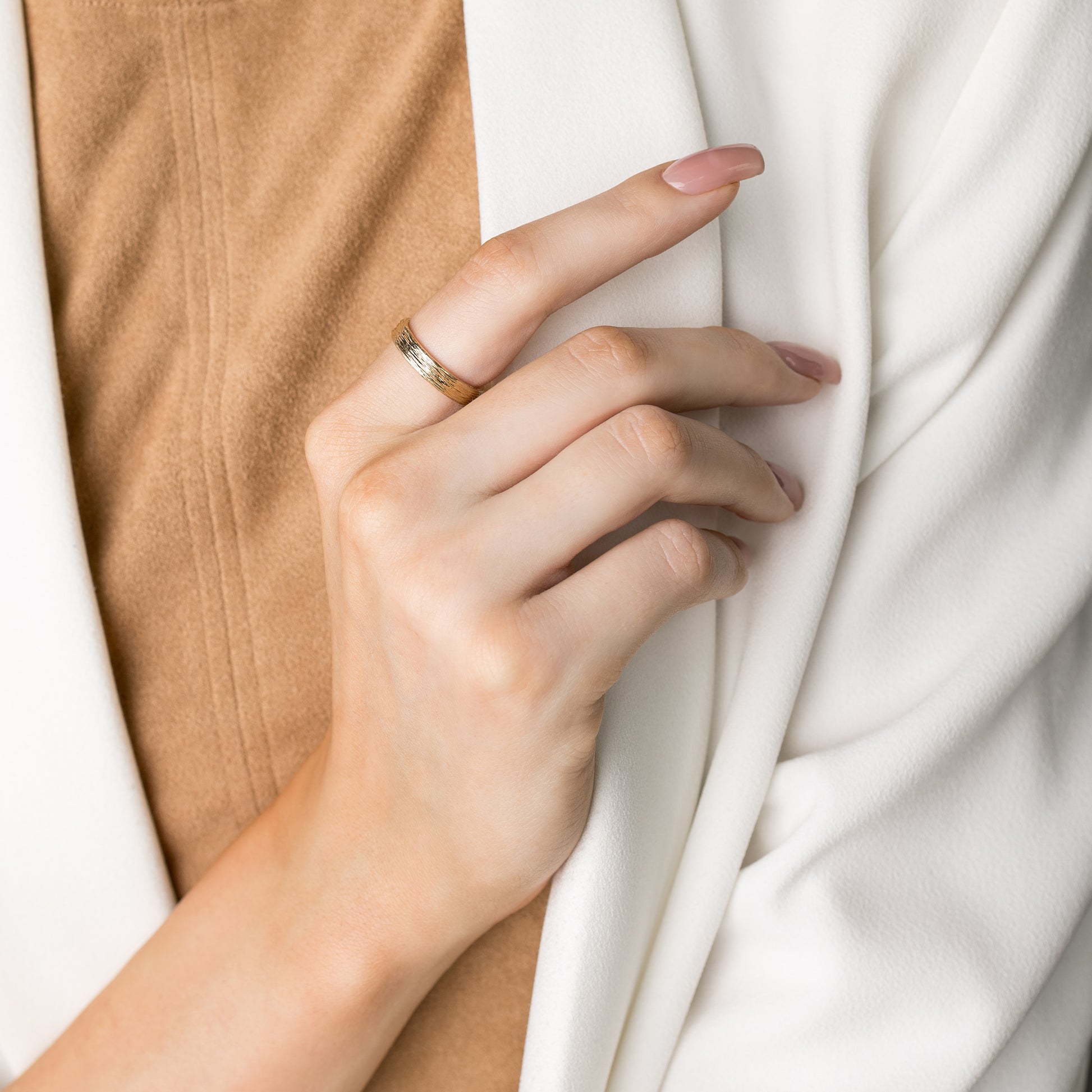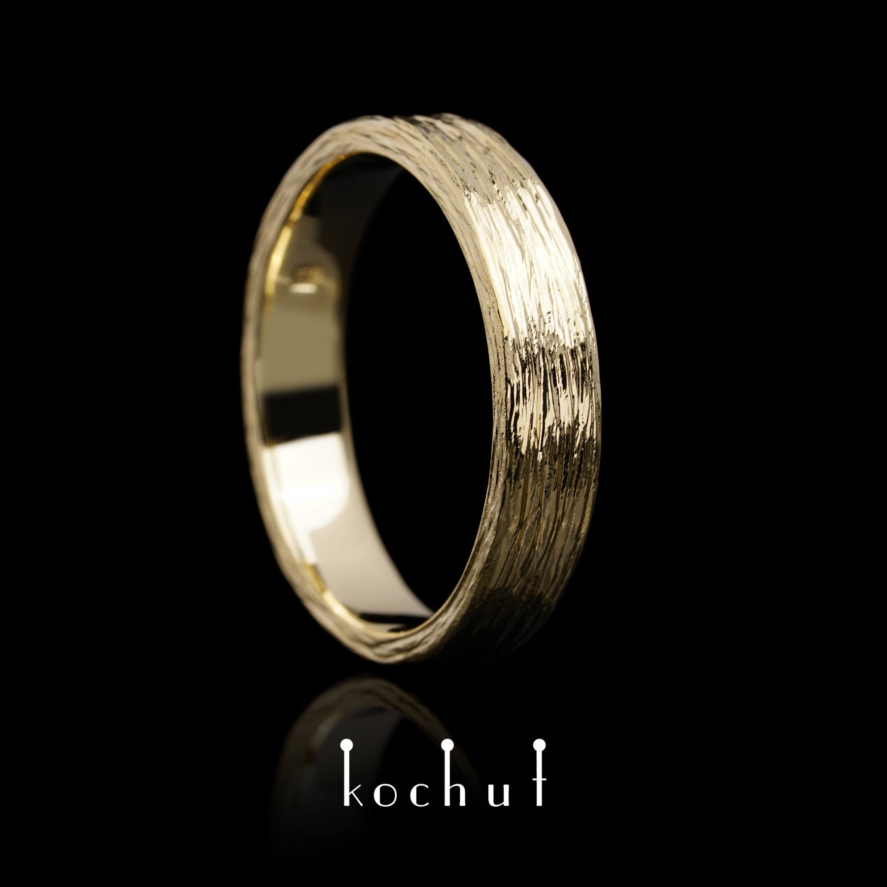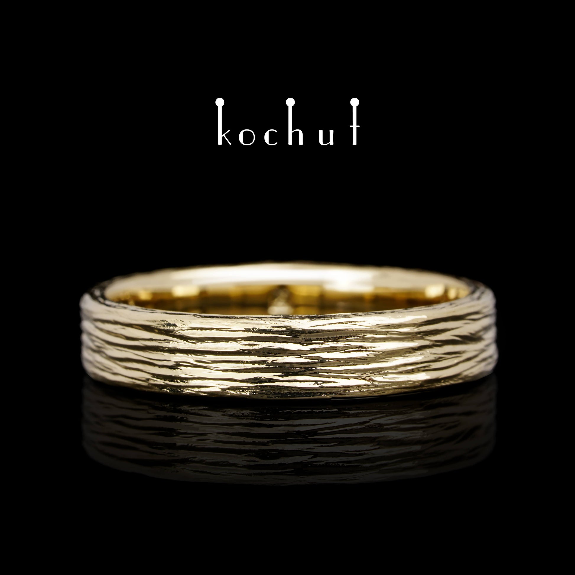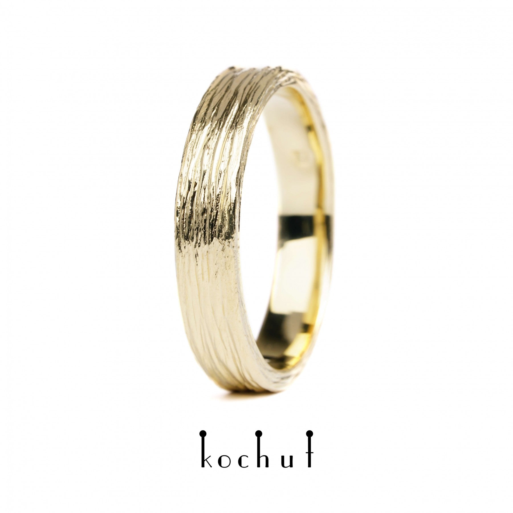 Baumrinde — Ehering aus Gelbgold