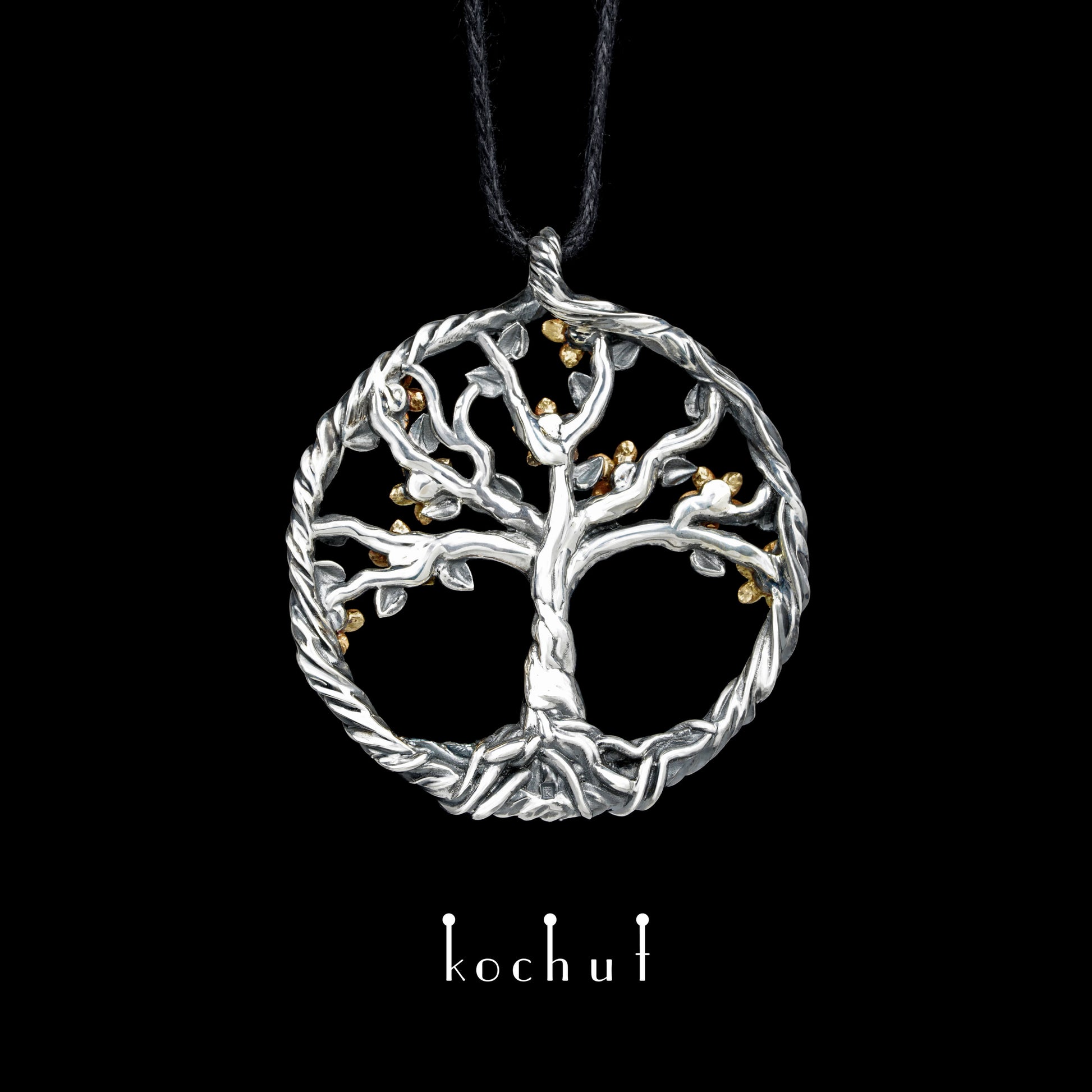 Blühender Baum — Anhänger aus oxidiertem Silber und Gelbgold