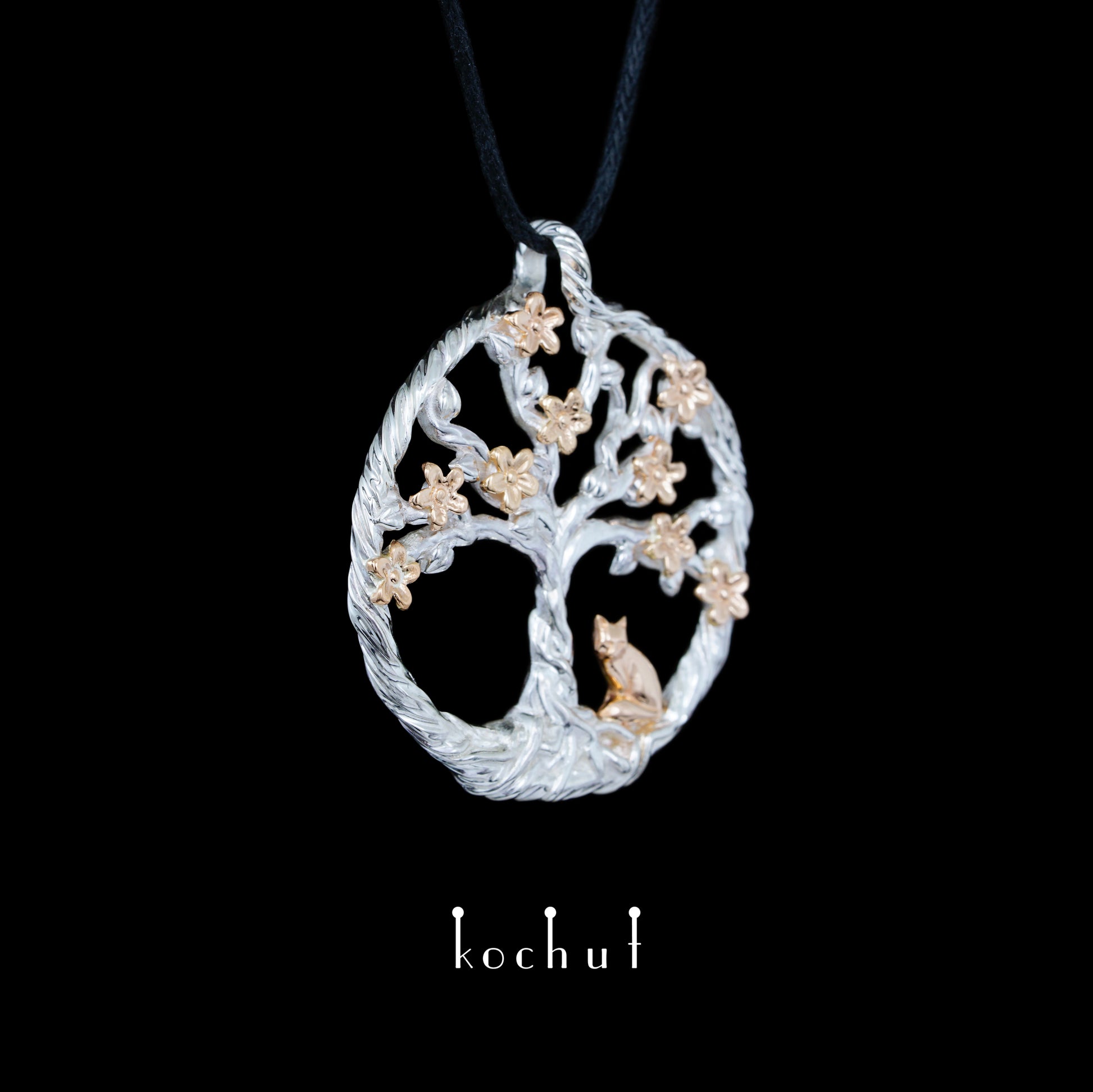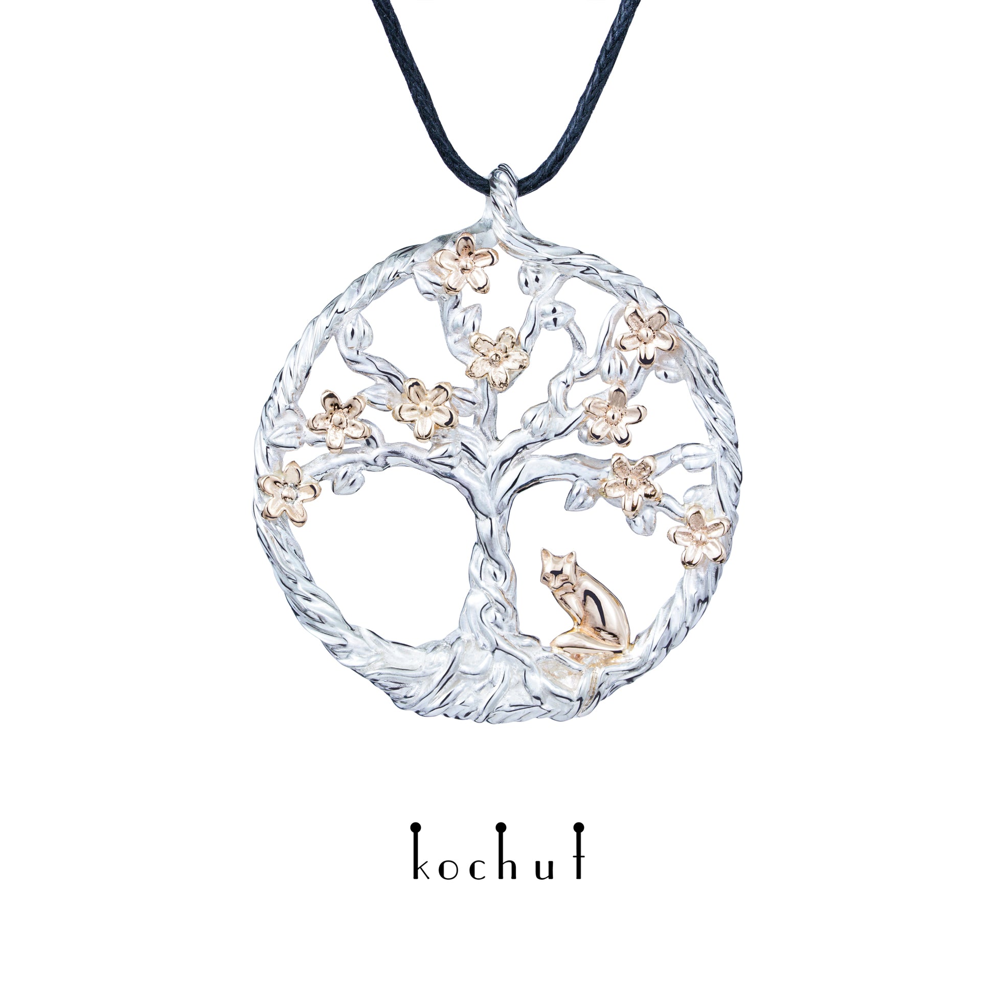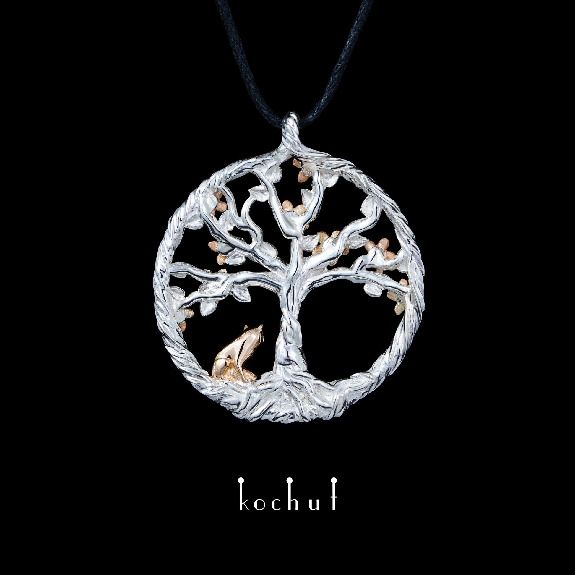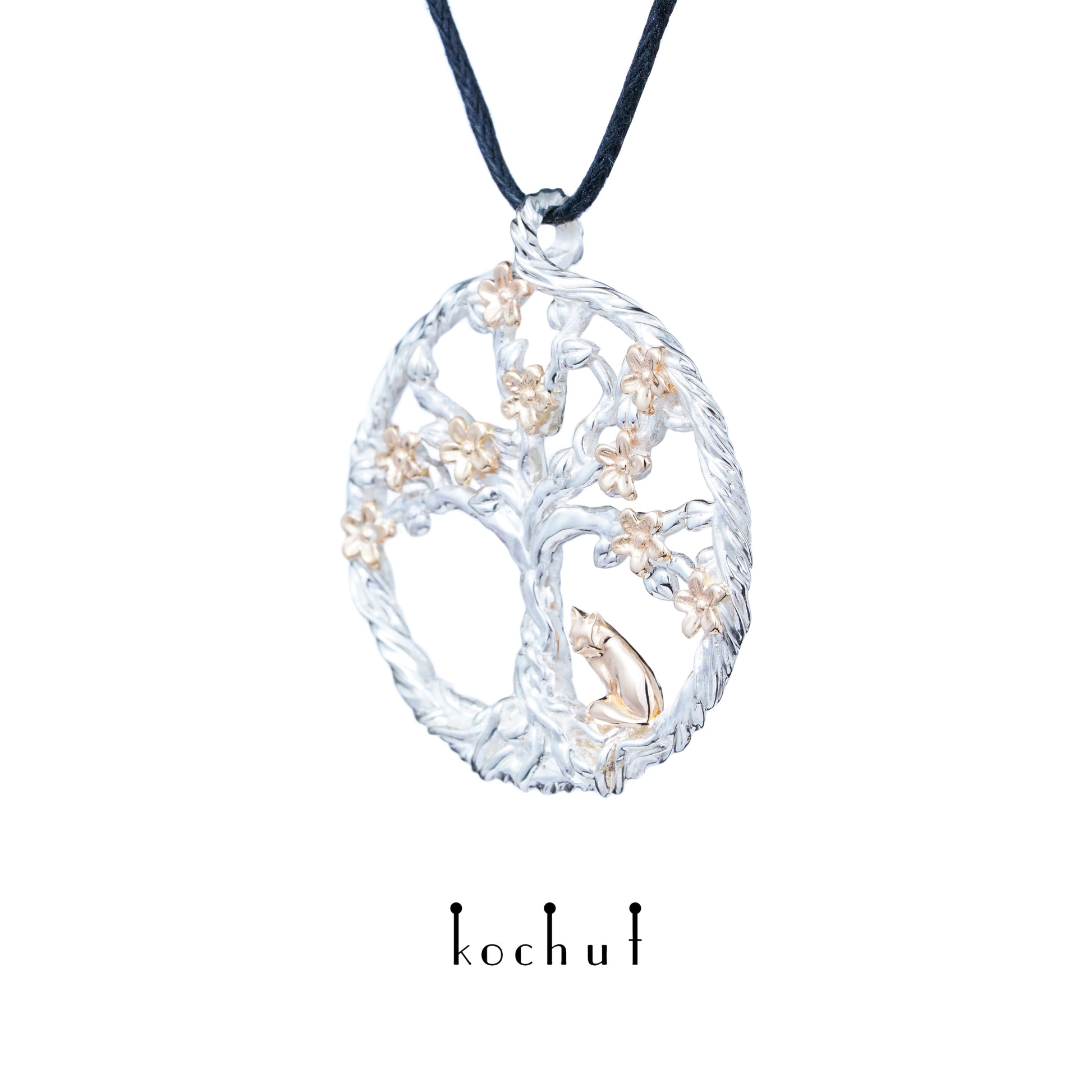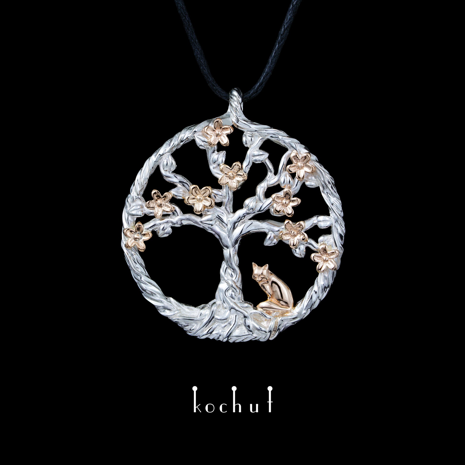 Blühender Baum mit kleinem Fuchs — Anhänger aus Silber und Rotgold