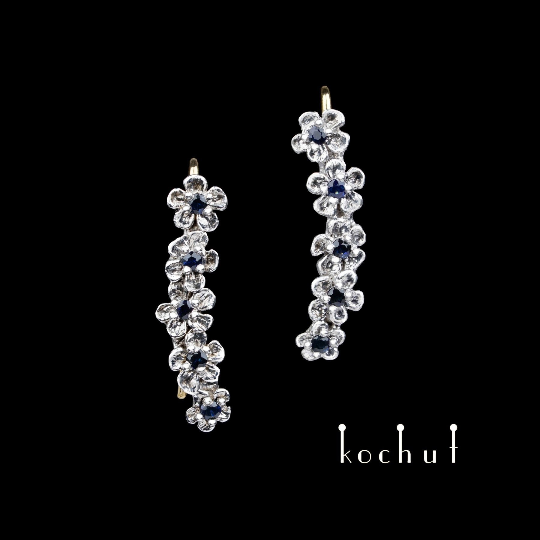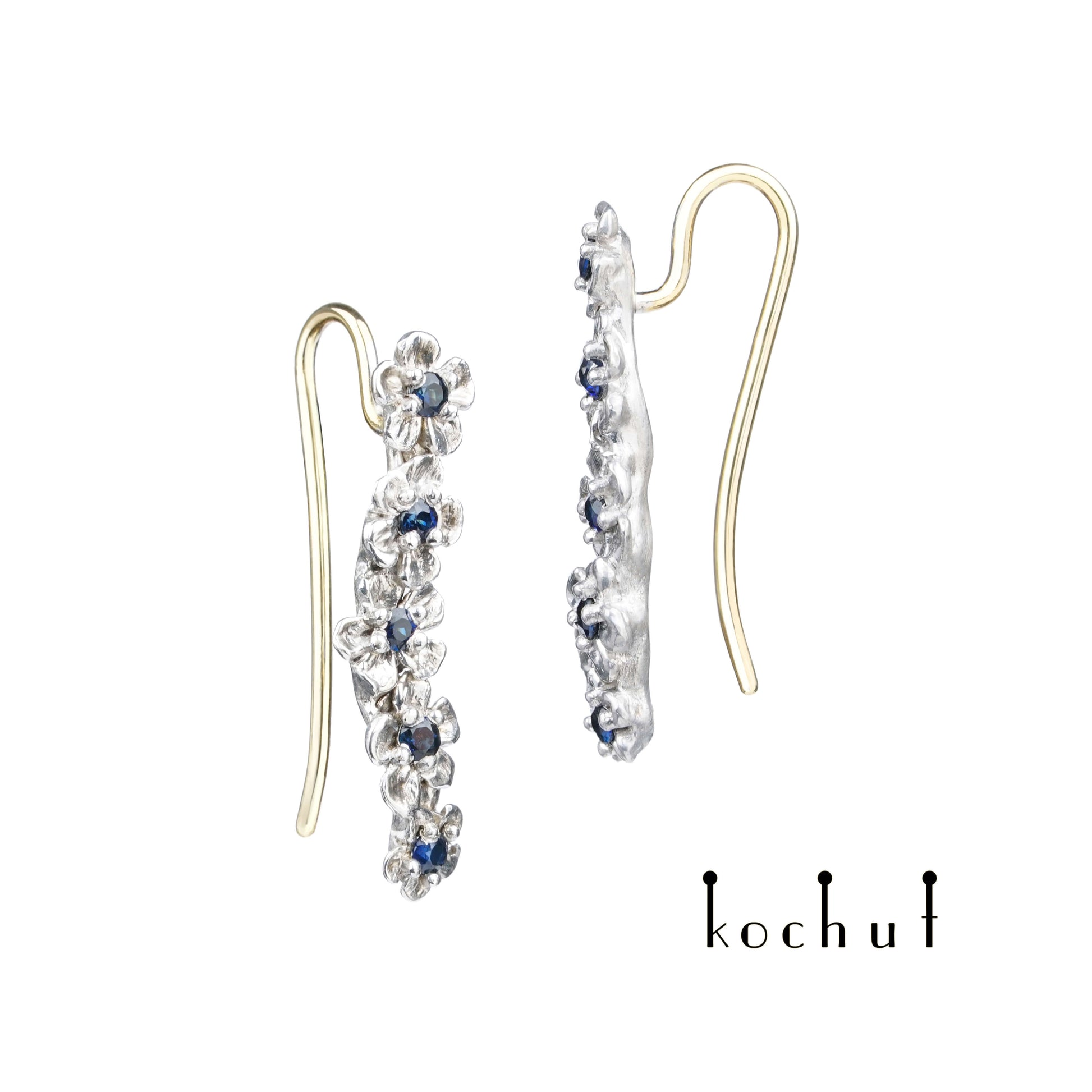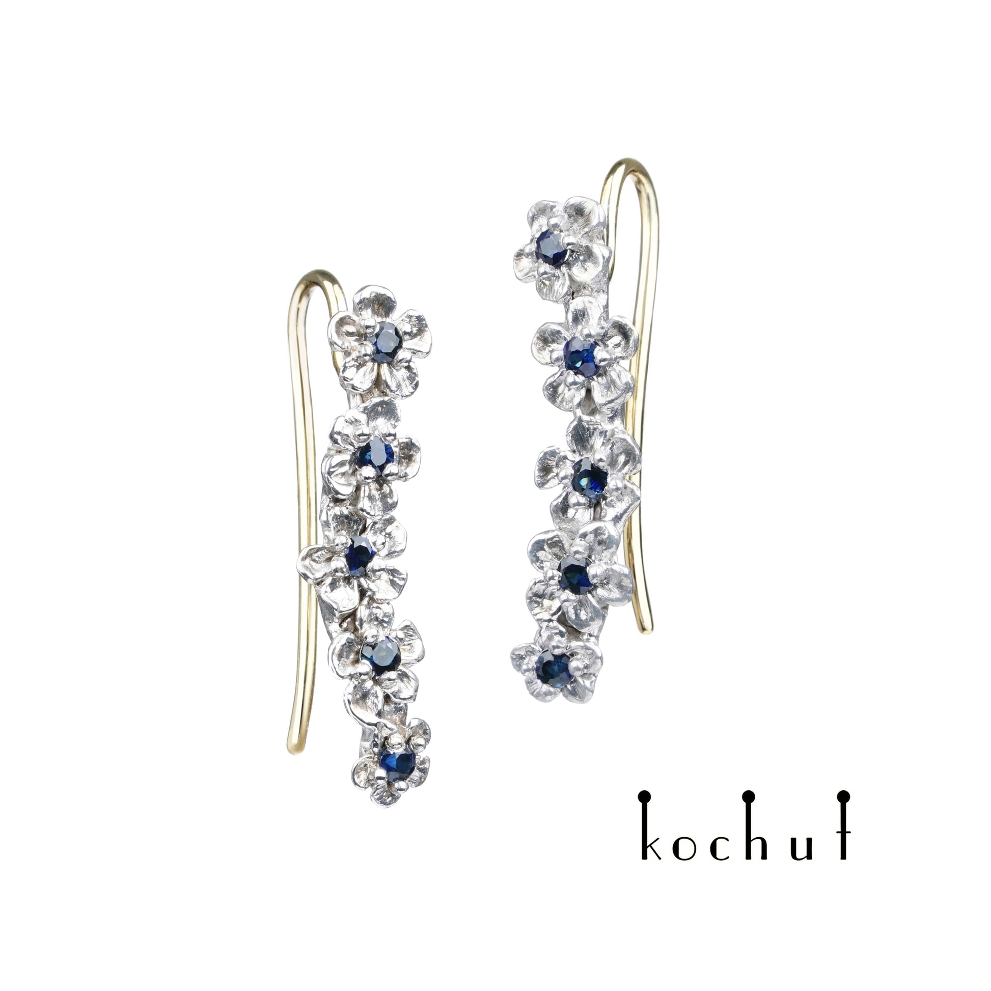 Blumenkrone — Manschetten-Ohrringe aus Silber und Gelbgold mit Saphiren, beschichtet mit Weißgold