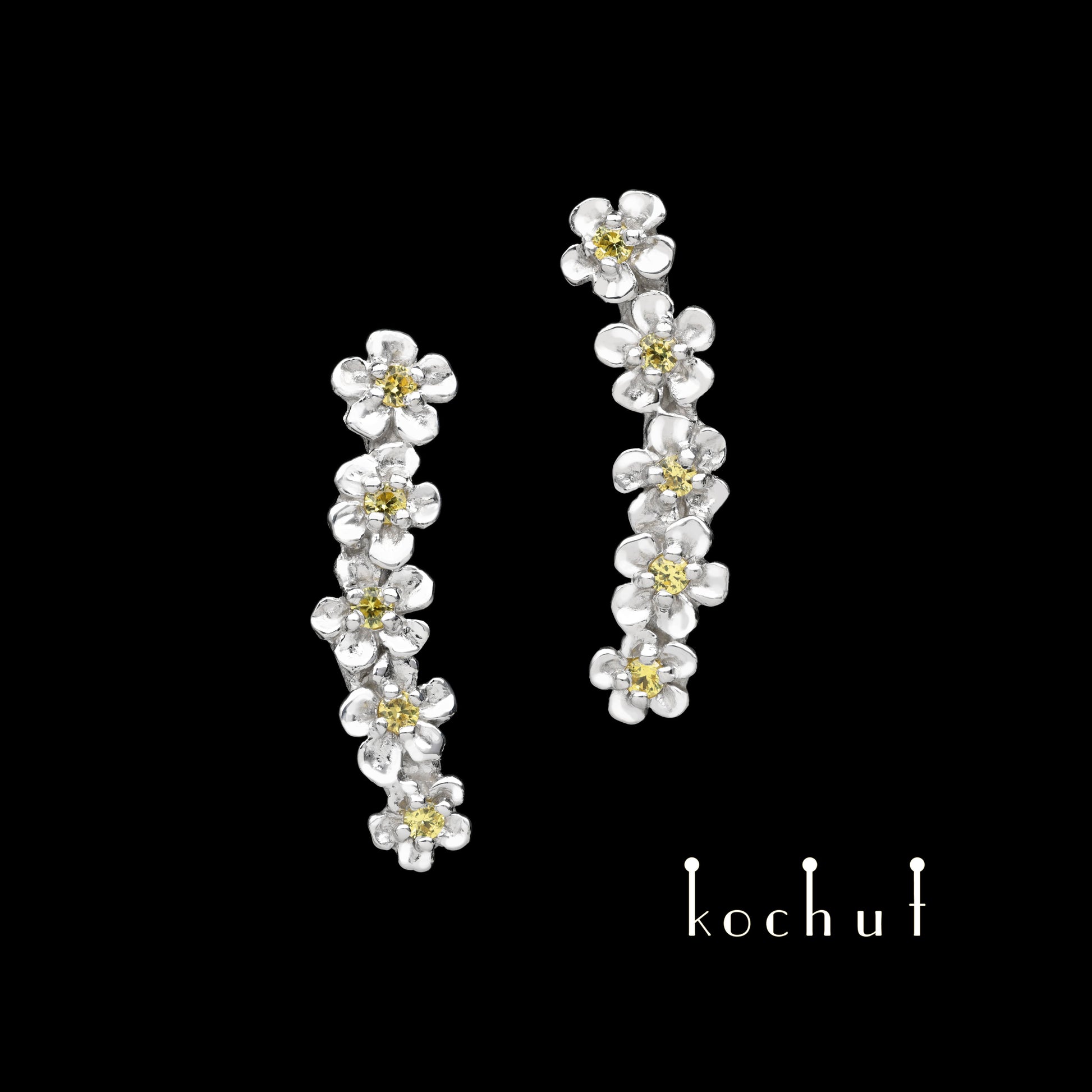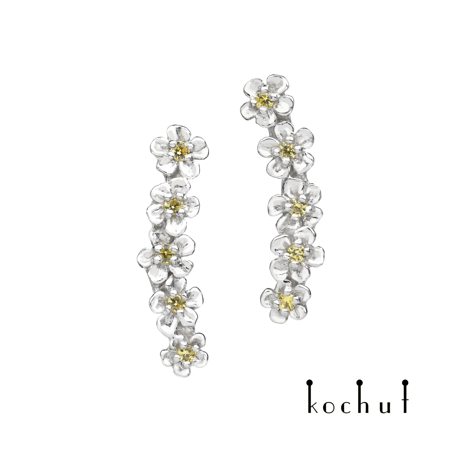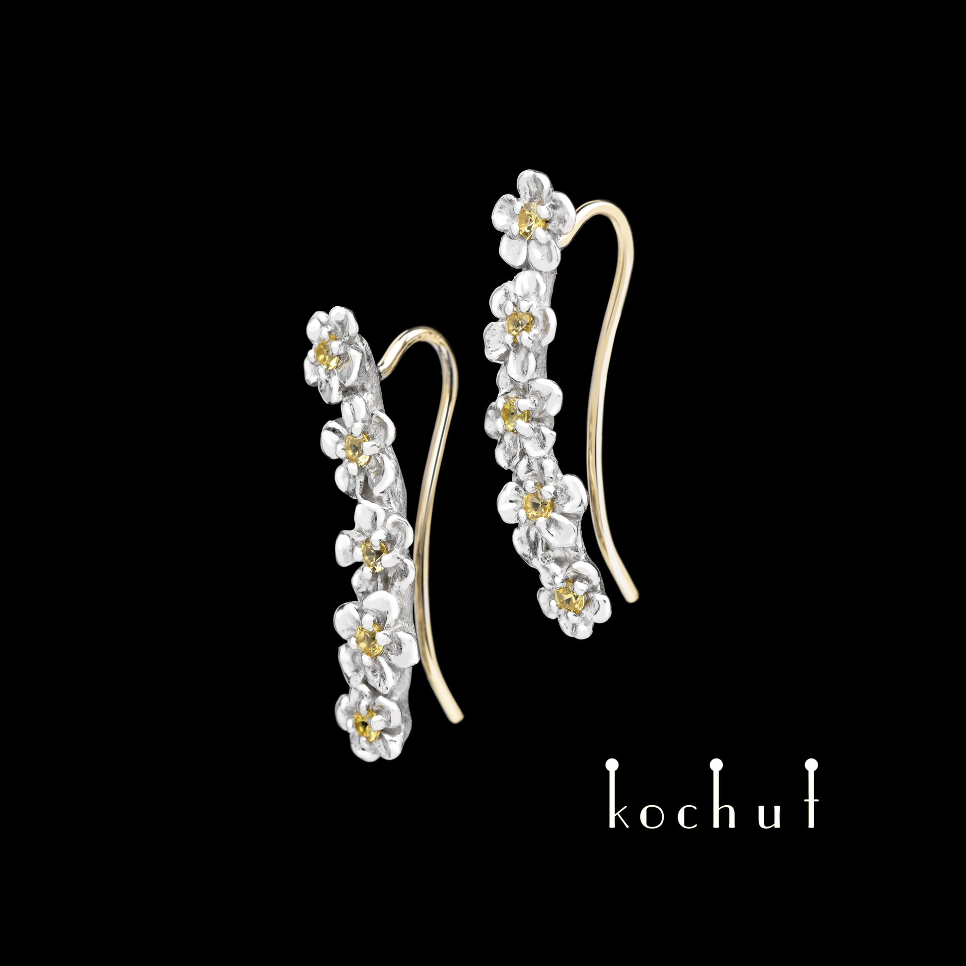 Blumenkrone — Ohrklemmen aus Silber und Gelbgold mit gelben Saphiren, überzogen mit weißem Rhodium