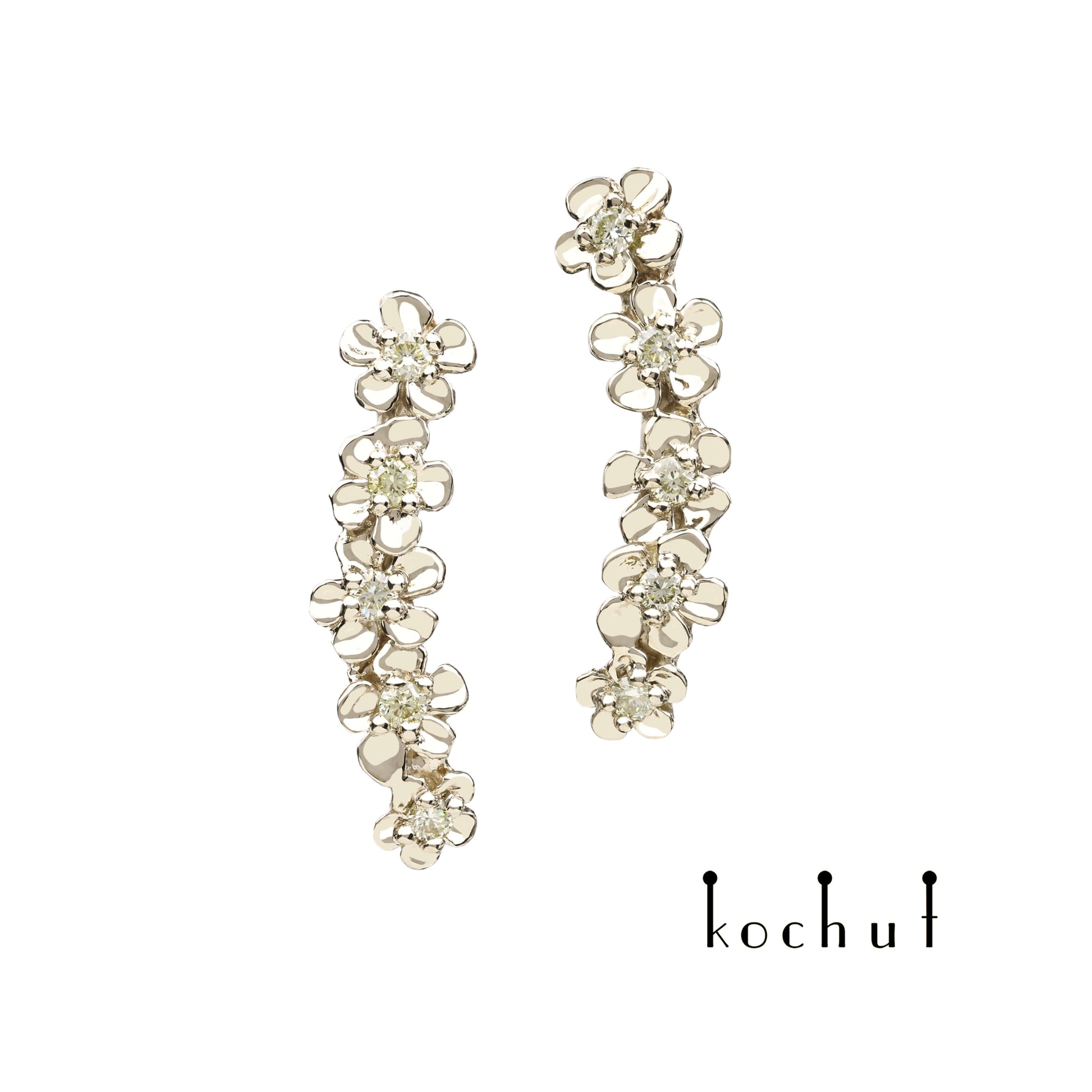 Blumenkrone — Ohrklemmen aus Weißgold mit hellgelben Diamanten